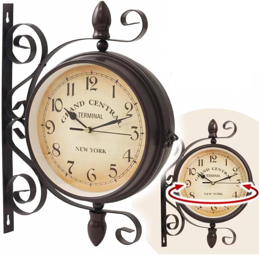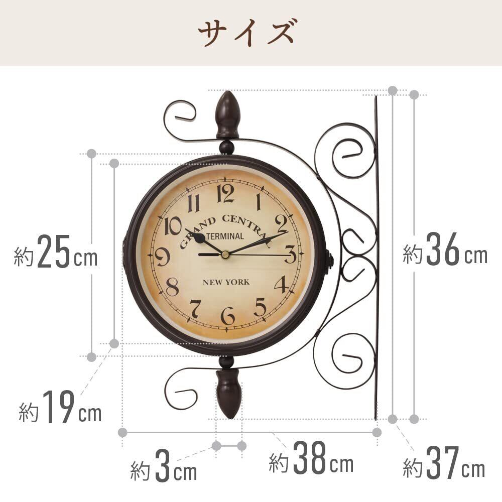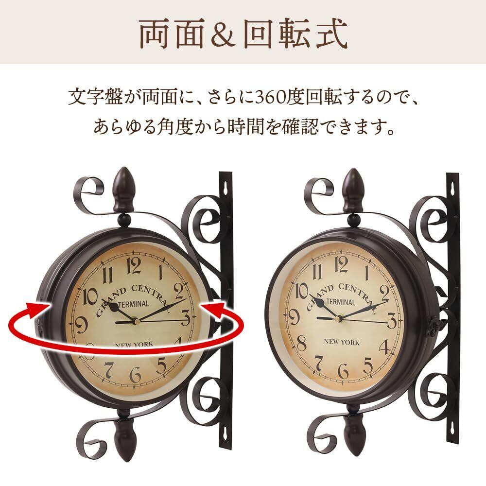 【NEW YORK TERMINAL】【アンティーク調の両面壁掛け時計】 どの角度からも時間が確認できるおしゃれな両面時計