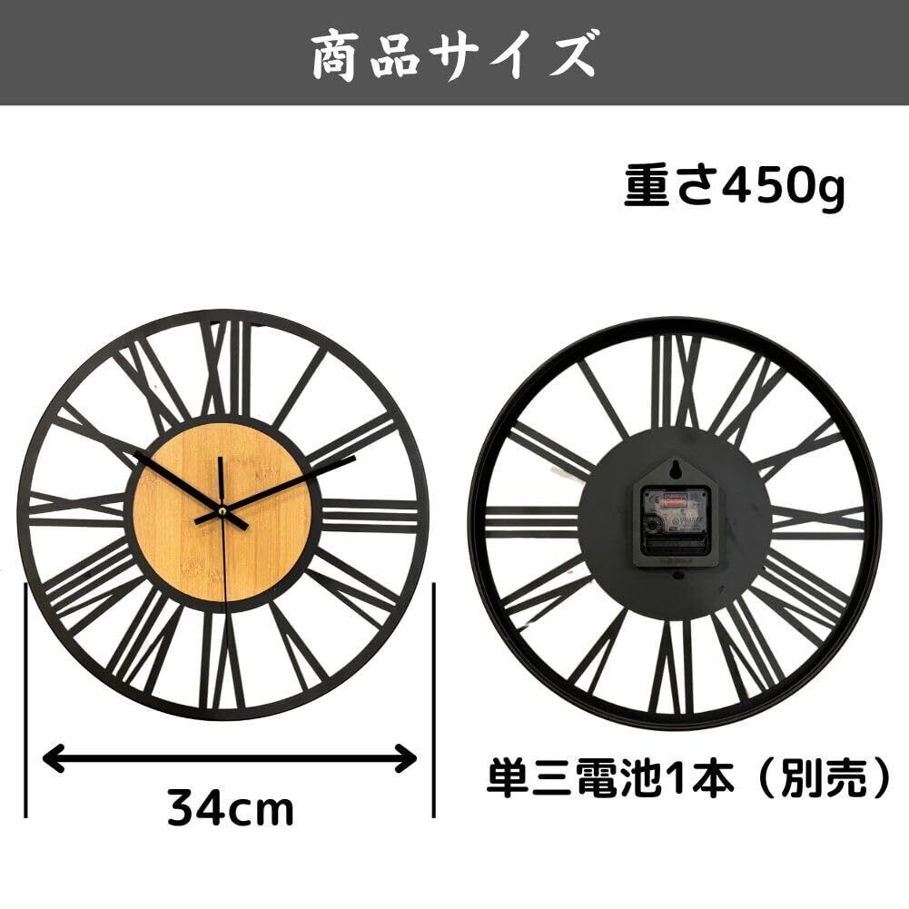 【商品仕様】サイズ:34cm 素材:天然木・アイアン 電池:単3電池 1本(別売り)
