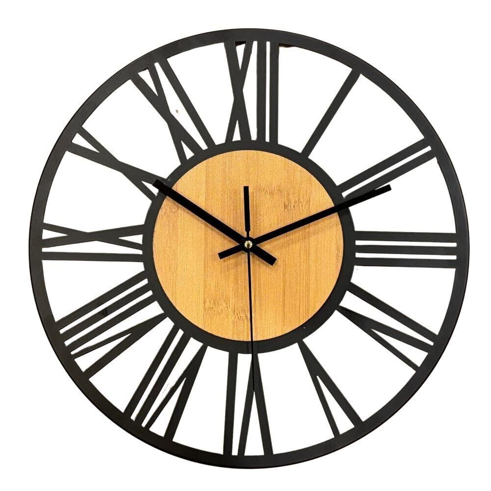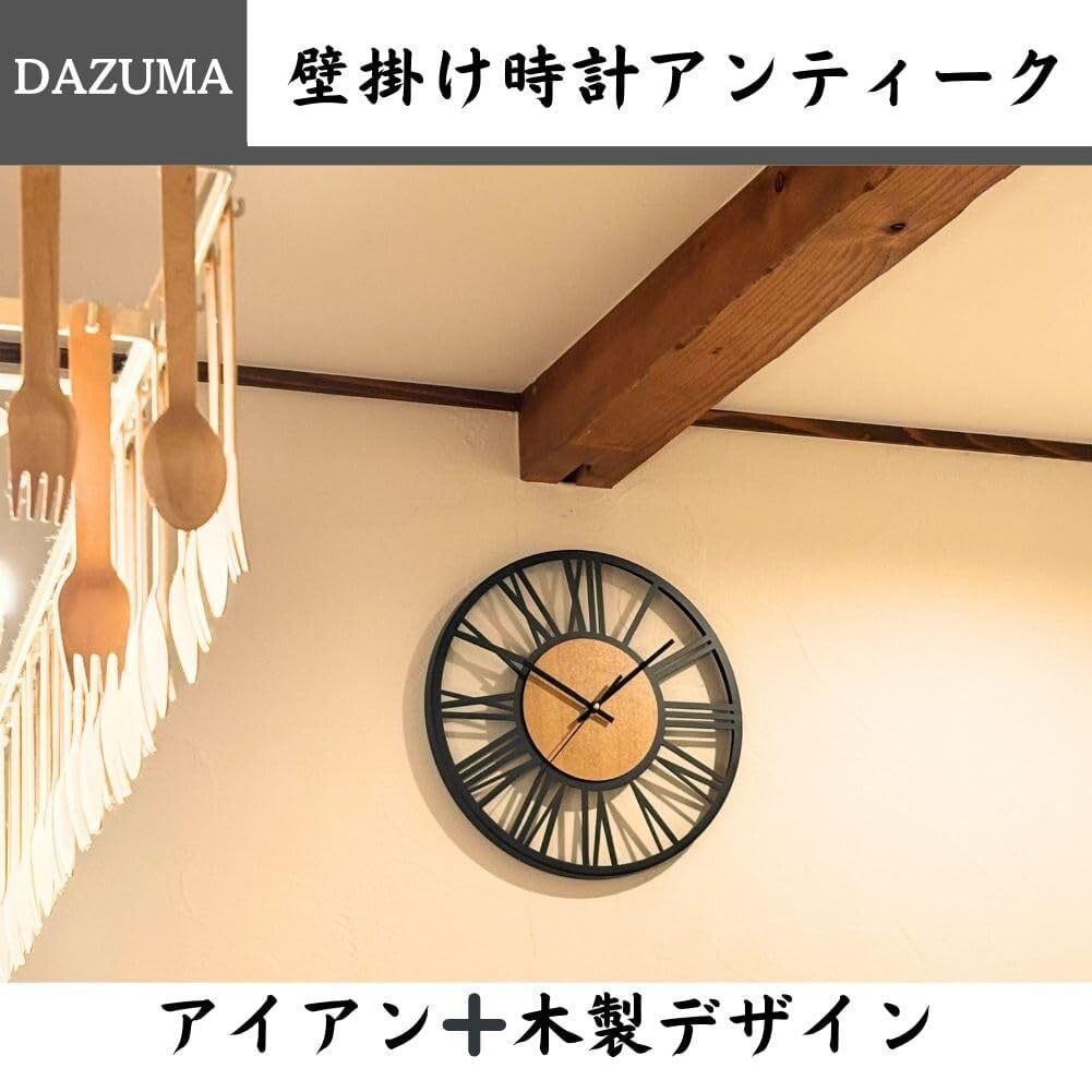 【在庫処分】壁掛け時計 アンティーク アイアン 木製 北欧 雑貨 シンプル 静音 インテリア ブラック お祝い プレゼント ウォールクロック 木 掛け時計