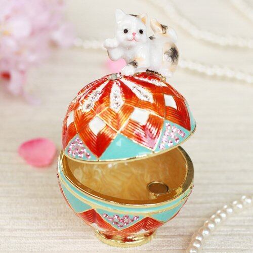 ピィアース 毬と猫 ジュエリーボックス EX543-1 キラキラ輝くネコの置物 仔猫 ねこ雑貨