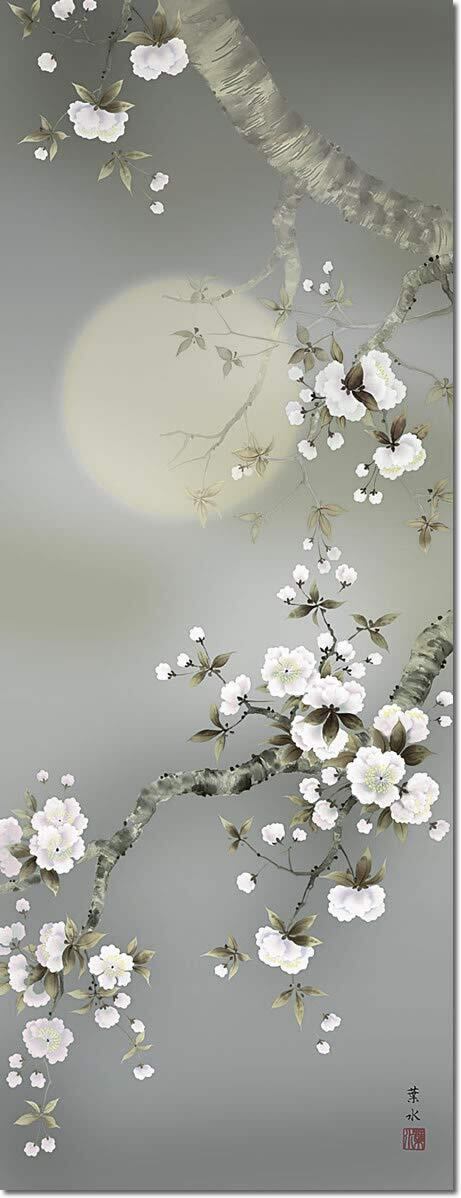 その短い花の命ゆえに美しい、月光に浮かび上がる夜桜を心をこめて描きました。絶妙な構図、色調、描写力など高い次元で融合した逸品です。
