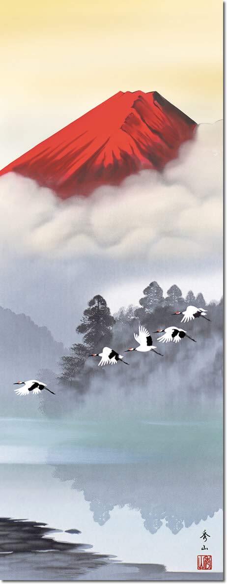 (株)三幸 年中飾り 富士山 掛け軸 赤富士飛翔 鈴村秀山 尺三 本表装 床の間 山水画 モダン 小振り 掛軸 2MB3-117