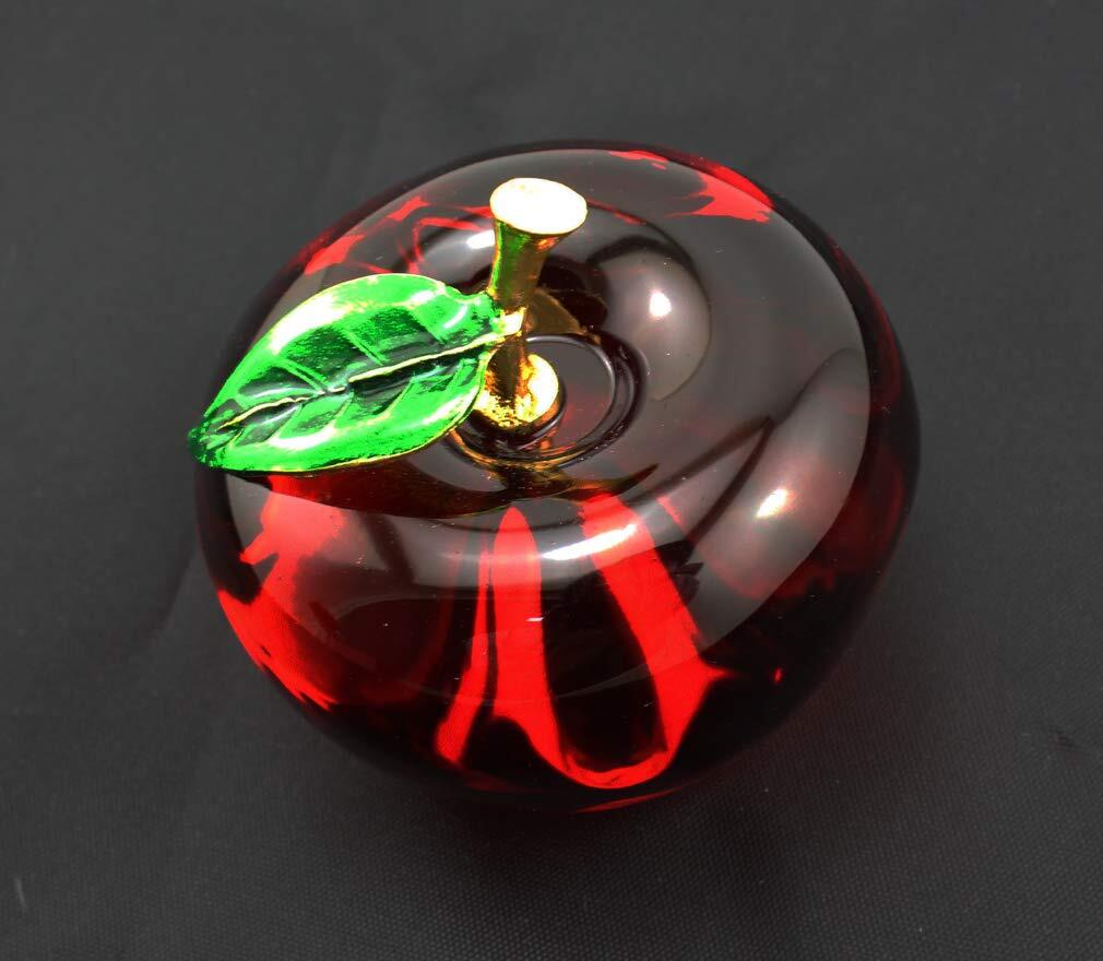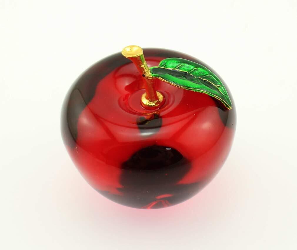 綺麗な赤色のおしゃれなリンゴ型の置物です。美しい透明感で、リビングや玄関などのディスプレイにお勧めです。
