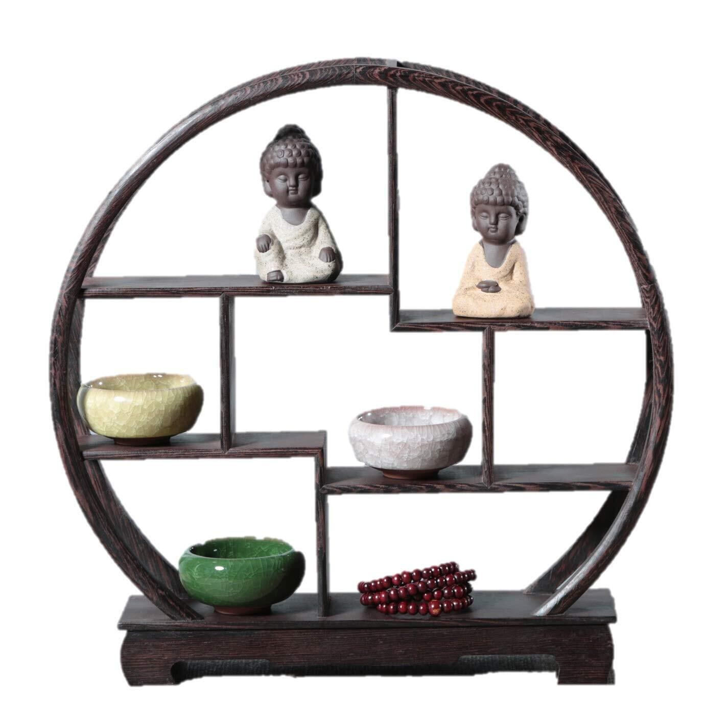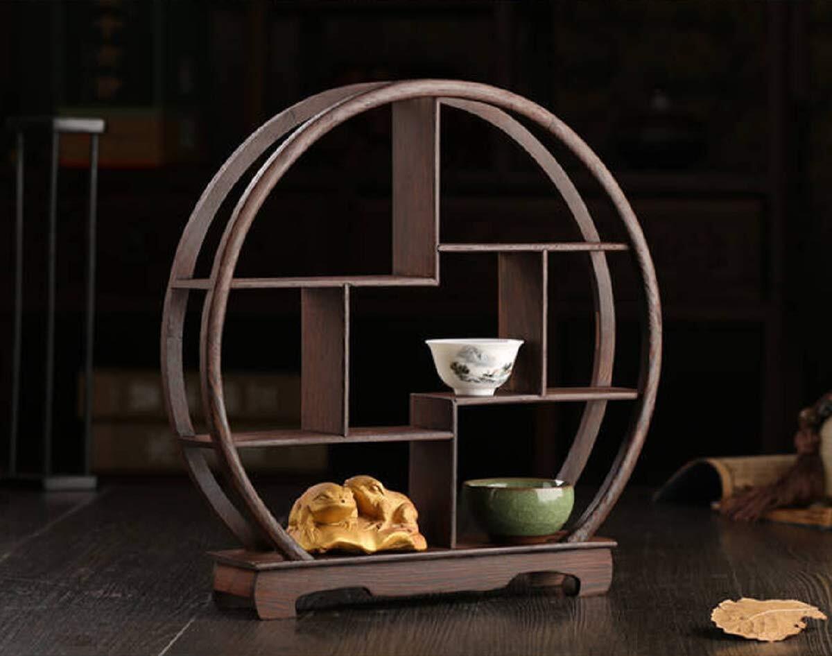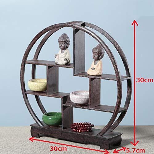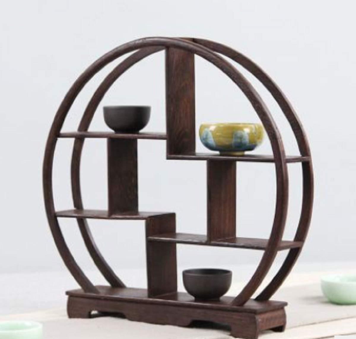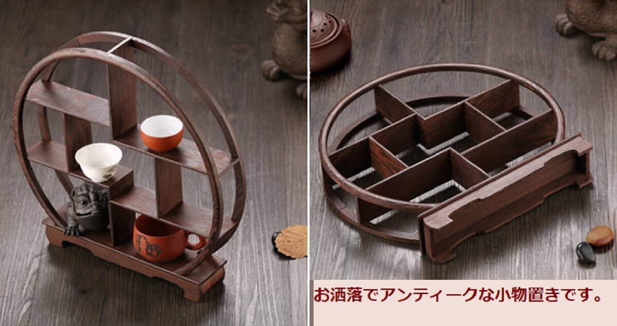 〔mikan〕 アンティーク 飾り棚 木製 中国 茶器 香炉台 仏具 花台 盆栽 花瓶 台 棚 丸型 ウッドラック 和風 モダン