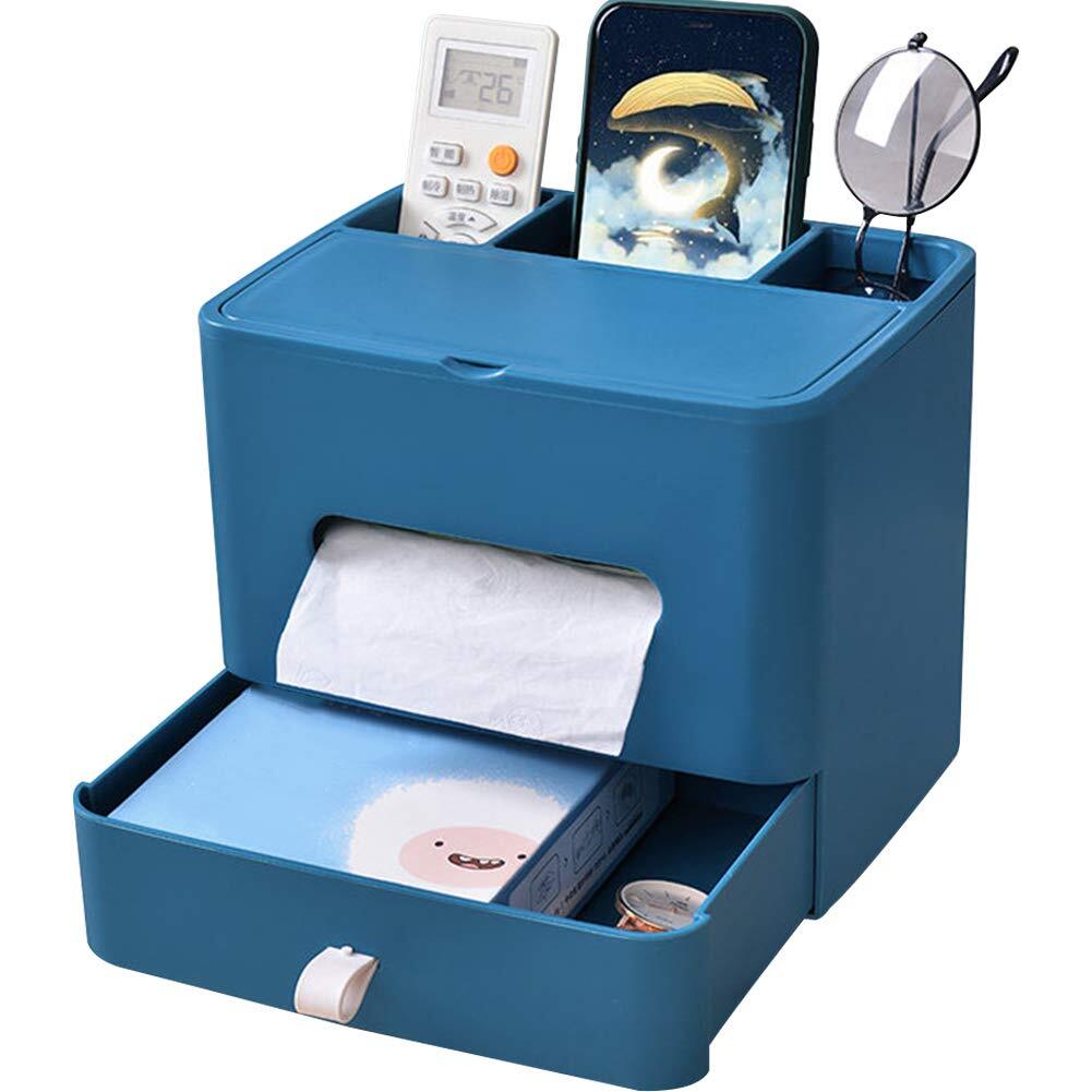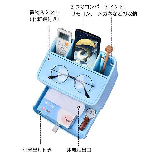 Umoraティッシュボックス 置物 多機能 スタンド 収納ボックス ティッシュ リビングルーム リモコン 小物入れ 卓上 引き出しと鏡付き(ダークブルー)