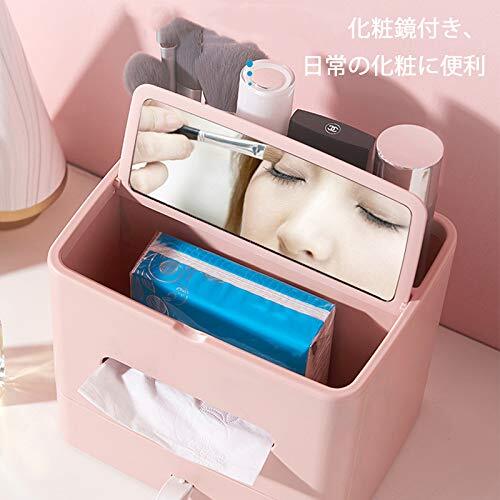 多機能卓上収納ティッシュボックス(化粧鏡付き)