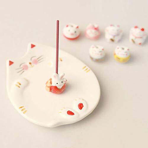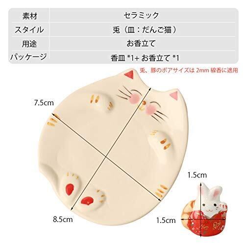 【詳細】:猫型香皿付きのお香立て、手つくり陶器製、高品質な粘土に焼きます。香皿:7.5*8.5cm(だんご猫香皿)、お香立て( ・ x ・ )兎1.5*1.5cm(W*H)、2mmの線香に適用。