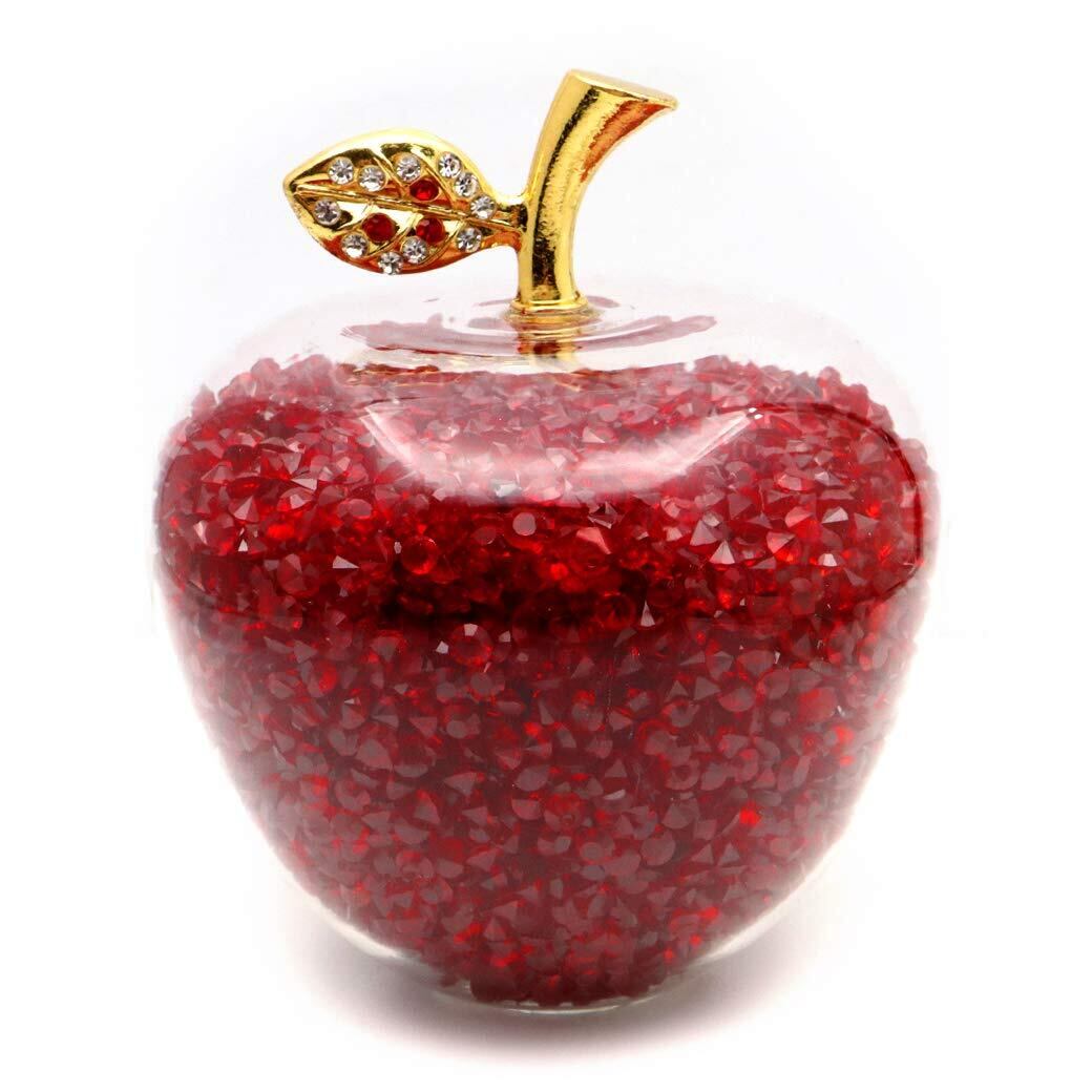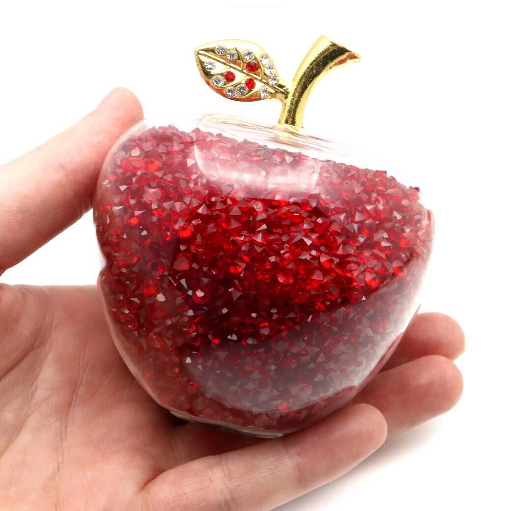 透明なガラス製のアップルのオブジェの中にキラキラ綺麗な水晶風のビーズが入っています