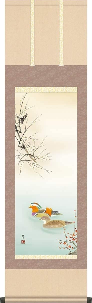 (株)三幸 冬掛け 掛け軸 鴛鴦 森山観月 尺三 小振り 本表装 床の間 花鳥画 モダン 掛軸 2MA5-067