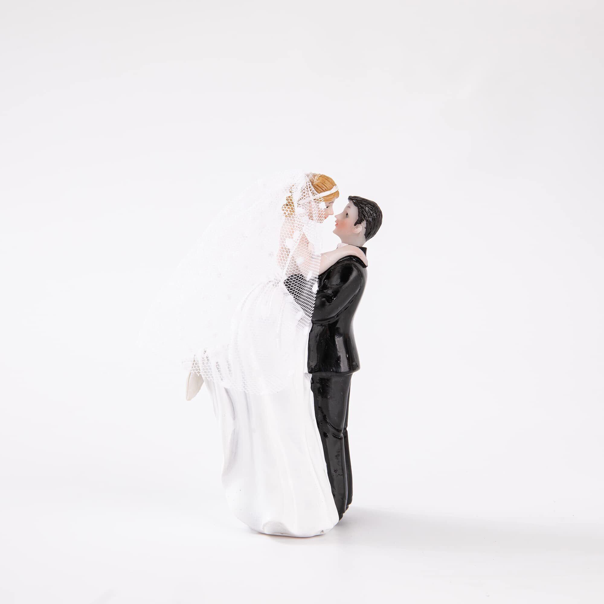【在庫処分】モダンなウェディングケーキトッパー 花嫁と花婿のハンドメイド置物 装飾用 素朴なケーキトッパー 結婚式用 面白いカップルの像 デスクデコレーション、フライングハグ
