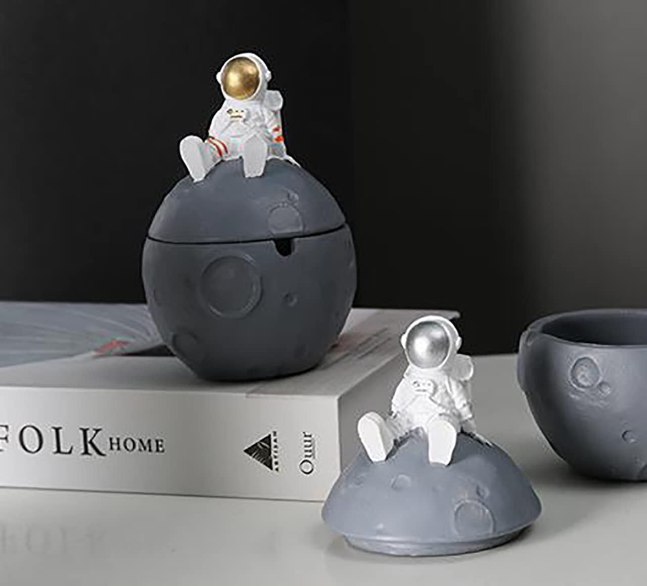 umely 小物入れ インテリア 宇宙飛行士 おしゃれ ゴールド 樹脂 キャラクター 卓上 蓋付き 密閉 プレゼント 大容量 (ゴールド)