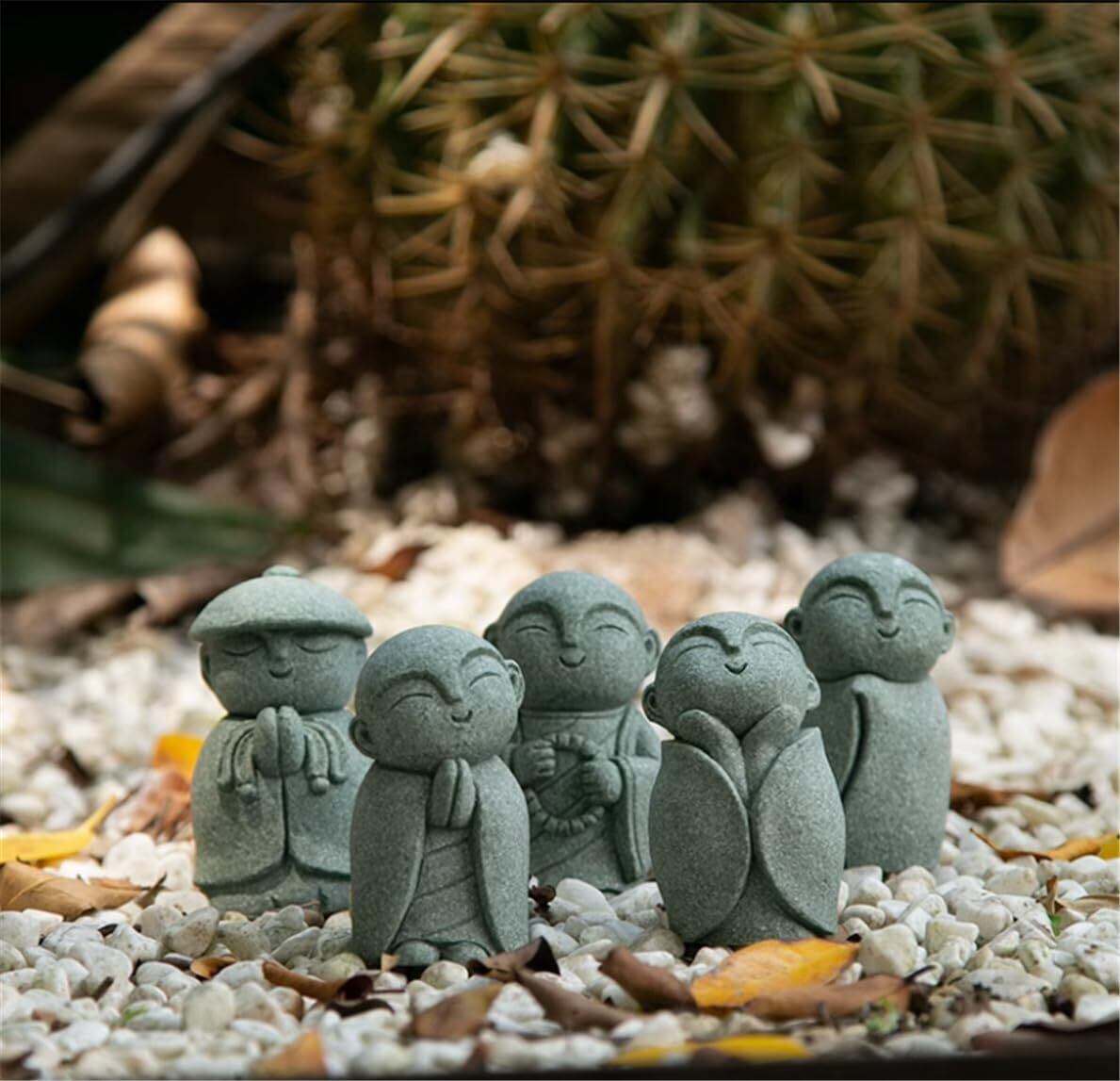 【店主からの伝言】芸術家が京都のお寺を見学していると、かわいい小僧さんと地下菩薩の石像を見つけて、面白くて美しいと感じました。帰国後、砂岩合成技術を用いて美しい小物を製作した。小柄な地宝菩薩で、手のひらの中に入れられています。