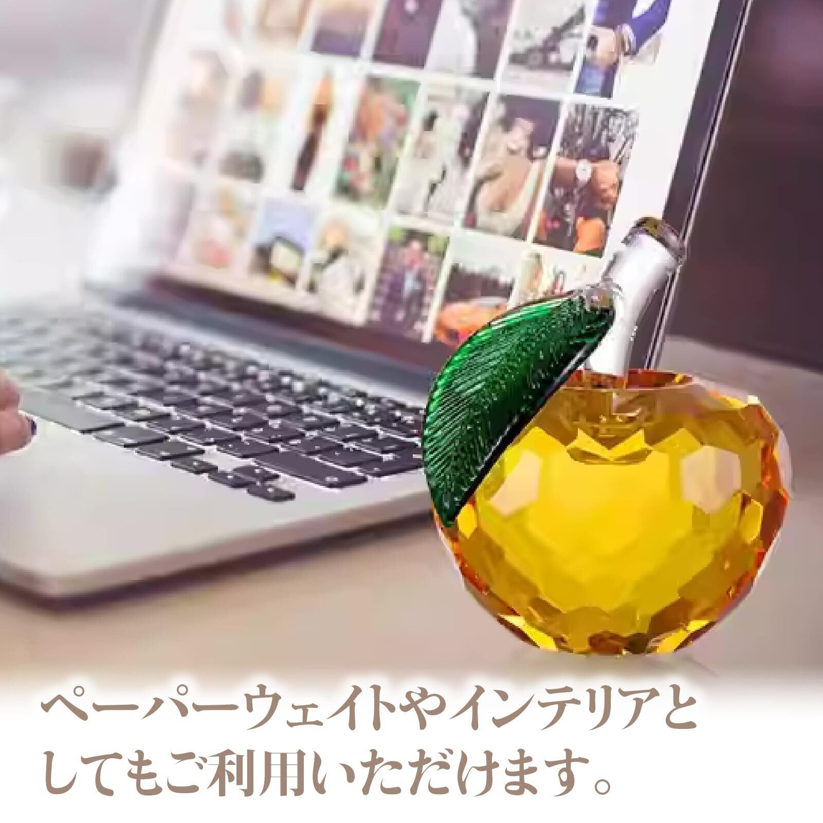 ZERONOWA クリスタル 林檎 りんご 置物 風水 雑貨 インテリア 贈り物 ギフト プレゼント (イエロー)