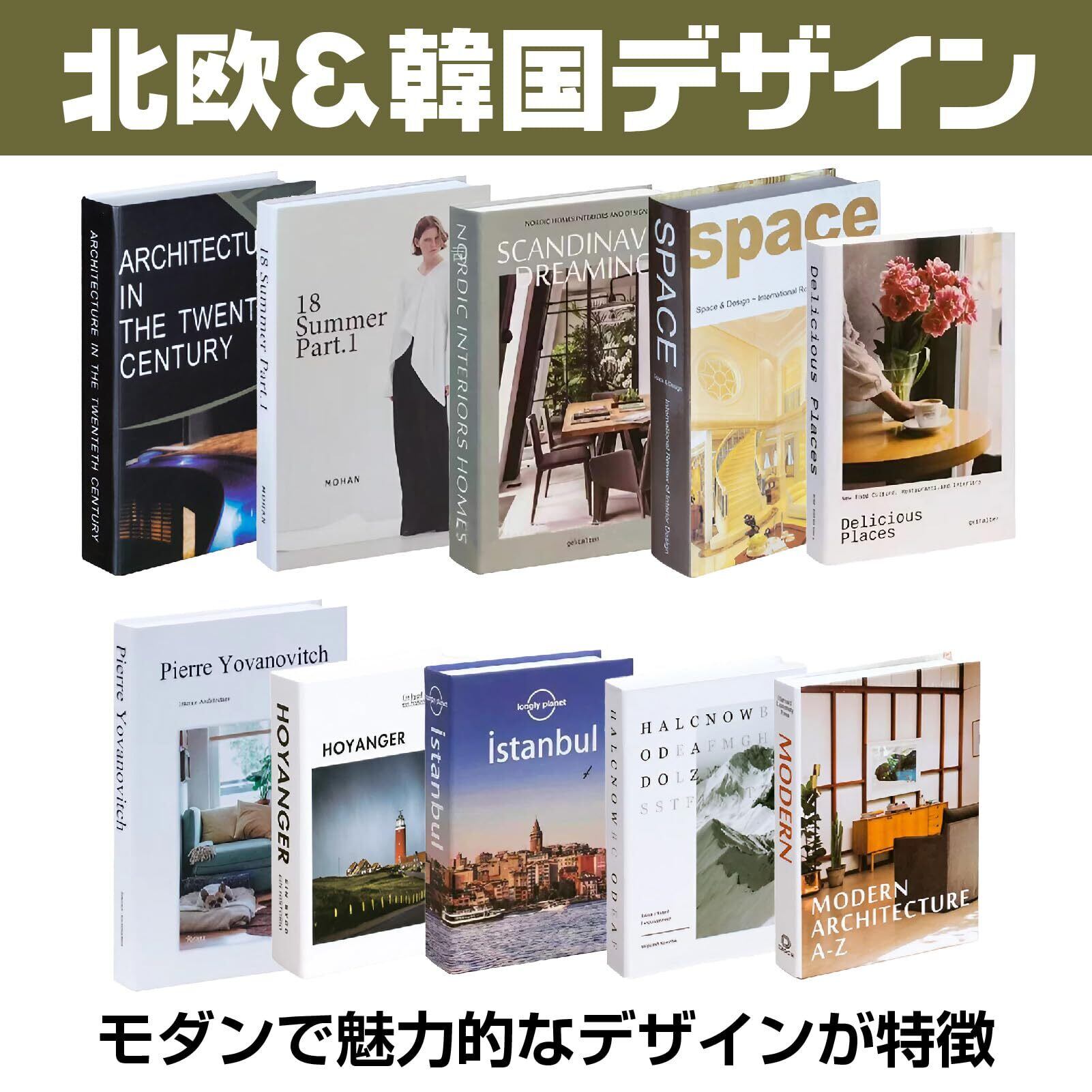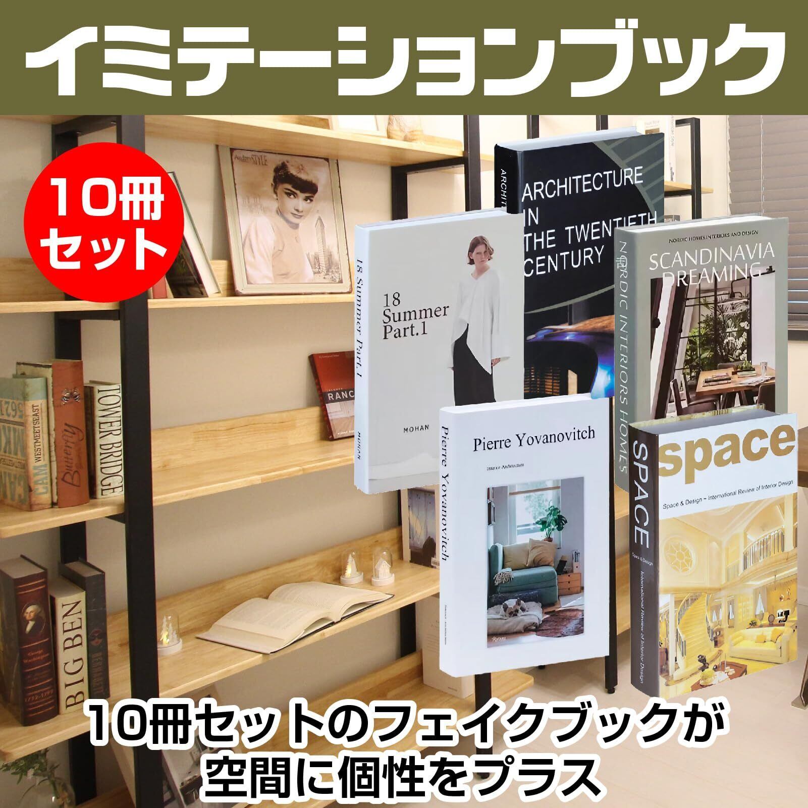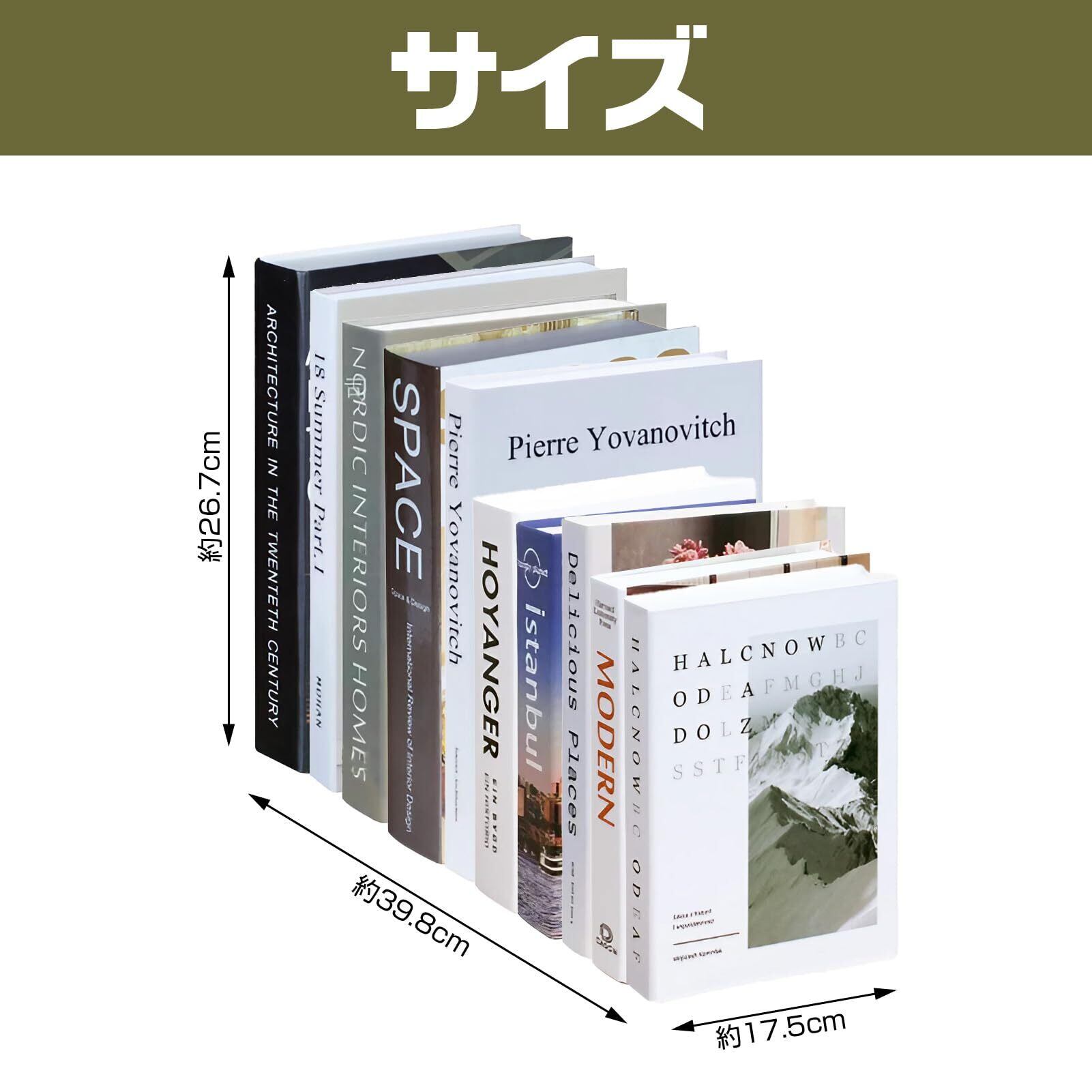 【セット内容】インテリアブック×10冊 【サイズ】横39.8×高さ26.7×奥行17.5cm(10冊並べた状態)【デザイン】スタイリッシュ