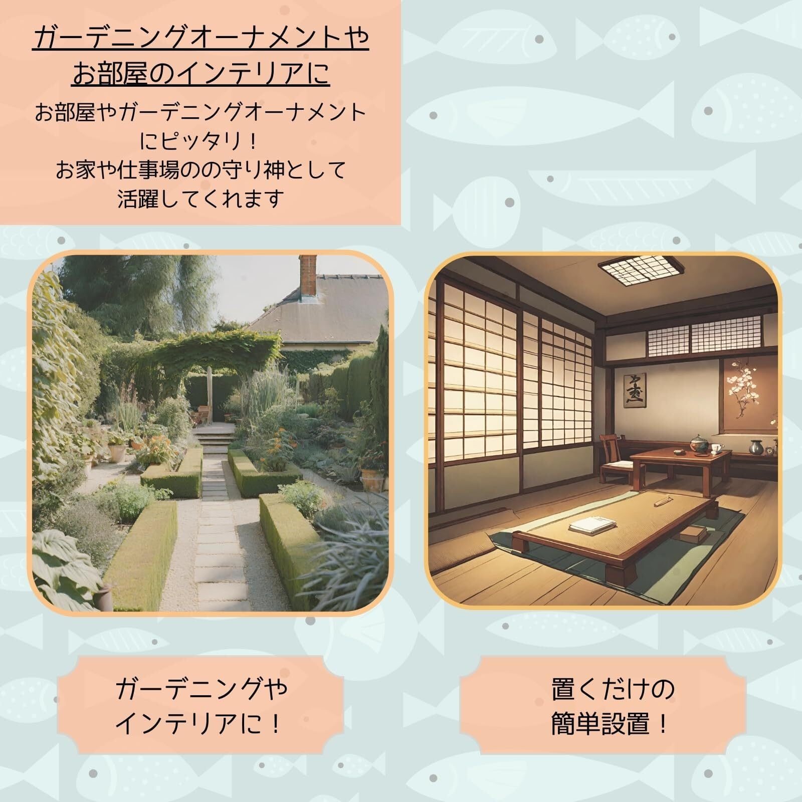 【インテリアとしての魅力】黒鯛の置物は、和室だけでなく、洋室にも合わせやすいデザインとなります。 また縁起物として、目上の方や大切な方への贈り物にもおすすめです。