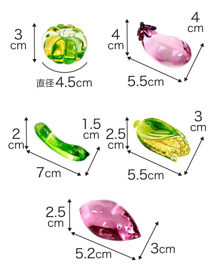 かぼちゃ:高さ 3cm×直径 4.5cm・なす:高さ 4cm×横幅 5.5cm×奥行き 4cm