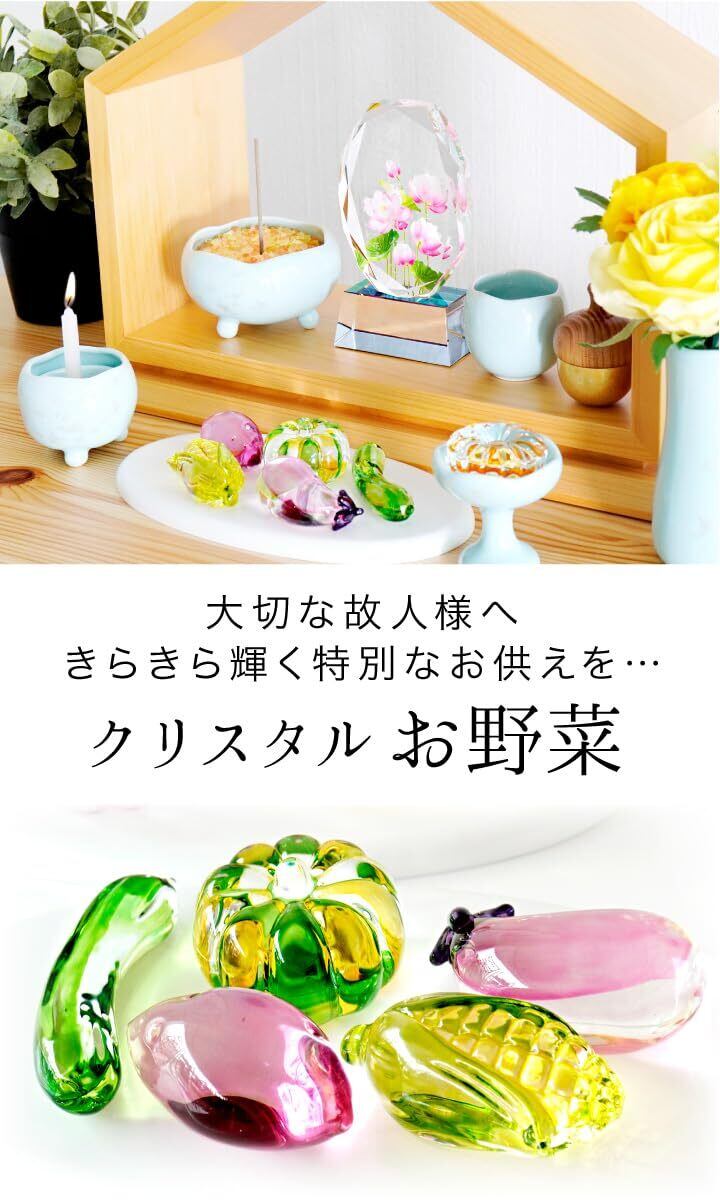 【特価セール】お供え クリスタル お野菜 セット 野菜 やさい ガラス 飾り オブジェ きらきら かわいい ミニ かぼちゃ なす きゅうり とうもろこし さつまいも お盆用品 仏具 お盆飾り モダン ミニ ミニサイズ | paghag