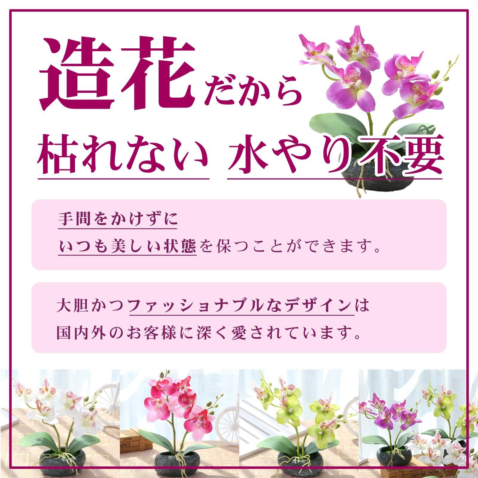 和風のインテリアや洋風のモダンな空間、どちらにもマッチするデザインが特徴のこの胡蝶蘭造花は、玄関やリビング、オフィスのデコレーションに最適。 季節や天候に関係なく、一年中華やかで落ち着いた雰囲気を保つことができるため、ギフトや新築祝いとしても喜ばれること間違いなし。 手間いらずで、長く楽しめる人工観葉植物で、あなたのお部屋に華やかさと癒しをプラスしましょう。
