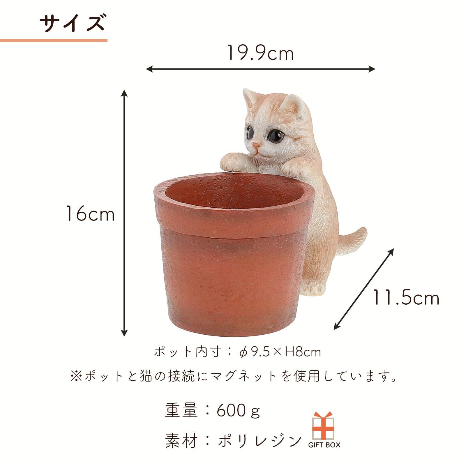 ポットを抱えたキュートな猫のオーナメント。ポットには小さめの植物などを入れて楽しむことができます