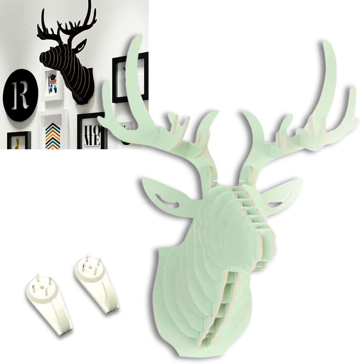 【人気商品】HINH 鹿のオブジェ 壁飾り 壁掛け アニマルヘッド 北欧風 日本語説明書付き 壁掛けフック2個付き ディア シフゾウ インテリア3D DIY 軽量 精巧 額縁使用可 (ライトグリーン) | paghag