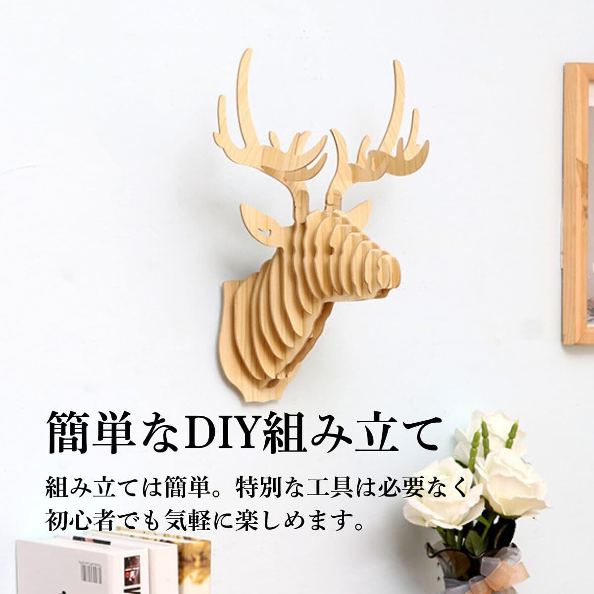 【簡単なDIY組み立て】 この壁飾りはDIYキットとして提供されており、自分で組み立てる楽しみがあります。組み立ては簡単で、特別な工具は必要ありません。壁掛け用のフックが2個付属されているので、届いたその日から鹿の壁掛けオブジェをお楽しみいただけます。日本語説明書付きですので、老若男女や初心者等問わず誰でも気軽に楽しめます。