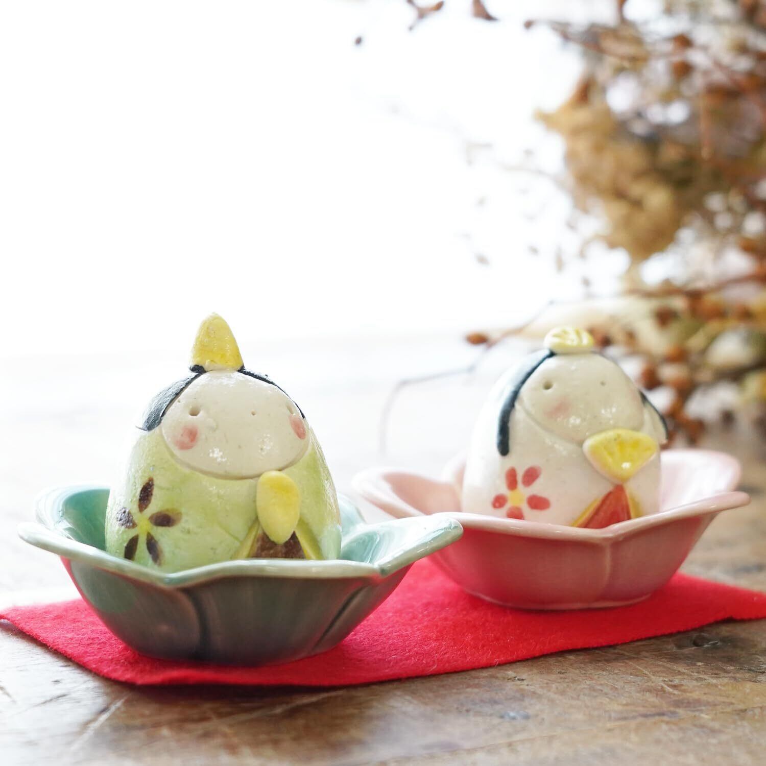 ふくべ屋 瀬戸焼 雛人形 花中お雛飾り モダンでかわいらしい 贈り物にも