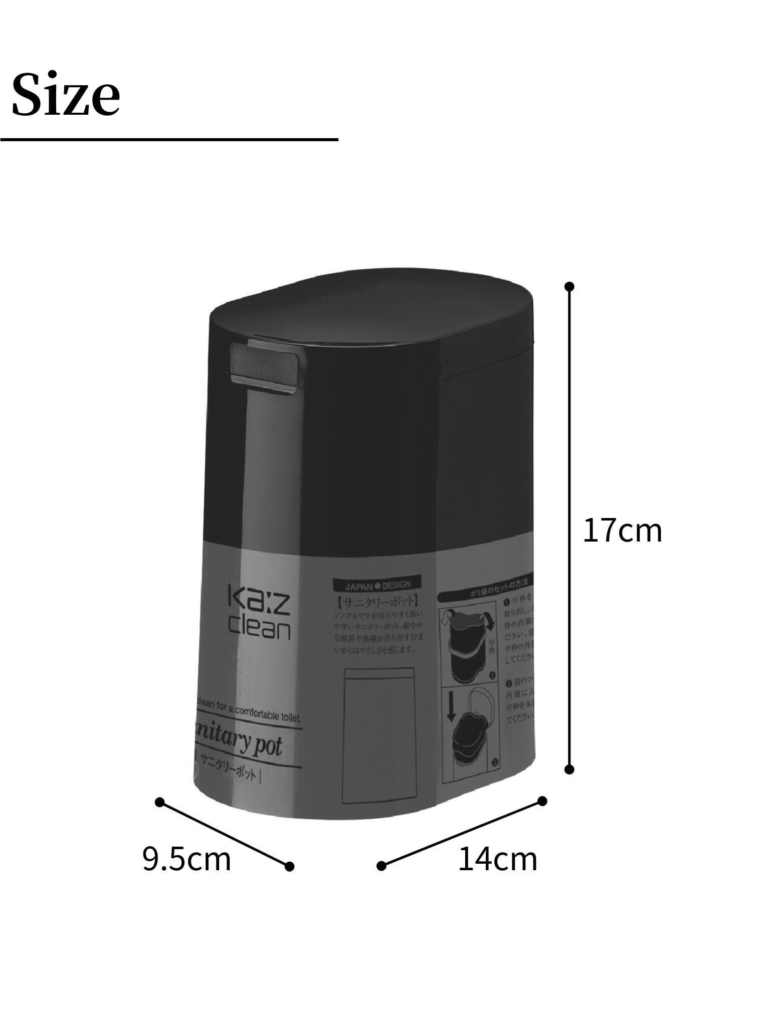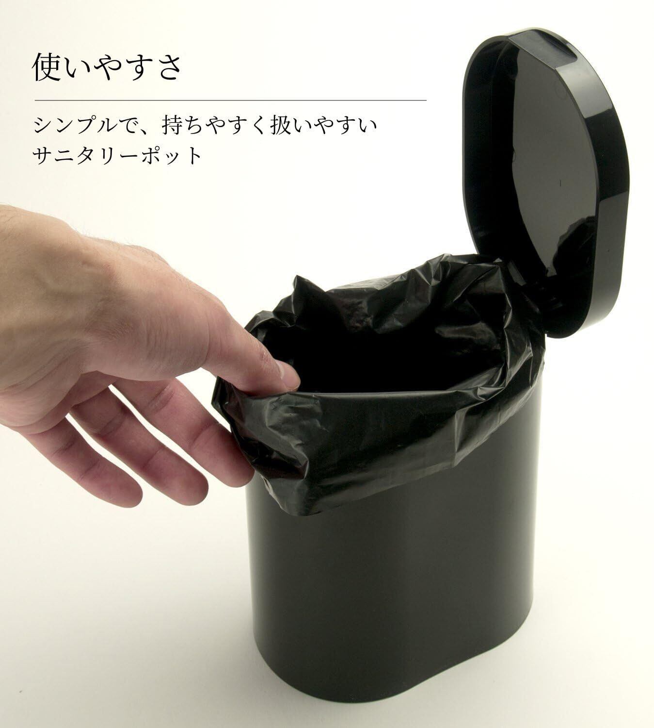 日本クリンテック Ka:z Clean サニタリーポット ブラック 幅9.5cm 全長17cm トイレポット トイレ用ゴミ箱 収納
