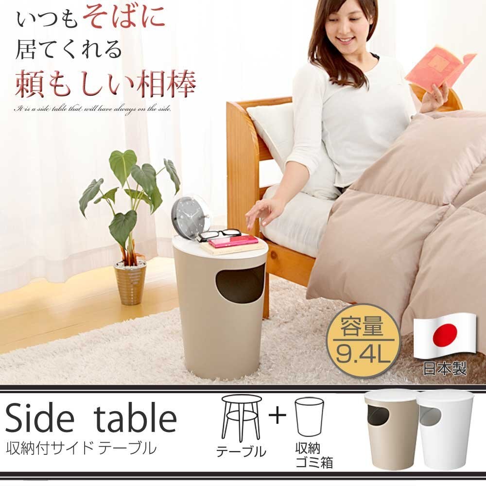 【2022最新】ぼん家具 サイドテーブル ごみ箱 日本製 ダストボックス ベッドサイド ソファーサイド ベージュ