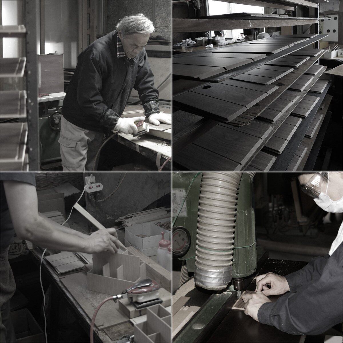 バスクシリーズの生産は、日本三大漆器産地のひとつ、紀州漆器の里、和歌山の工場で作られます。木製漆器に携わってきた橋本達之助工芸の職人達がひとつひとつ作り上げています。ごみ箱以外にも、キッチン用の大型ペールや、コンセントなどの配線を収納出来るケーブルボックス。毎日使うティッシュペーパーを入れるティッシュケースなど、様々な製品を展開しています。