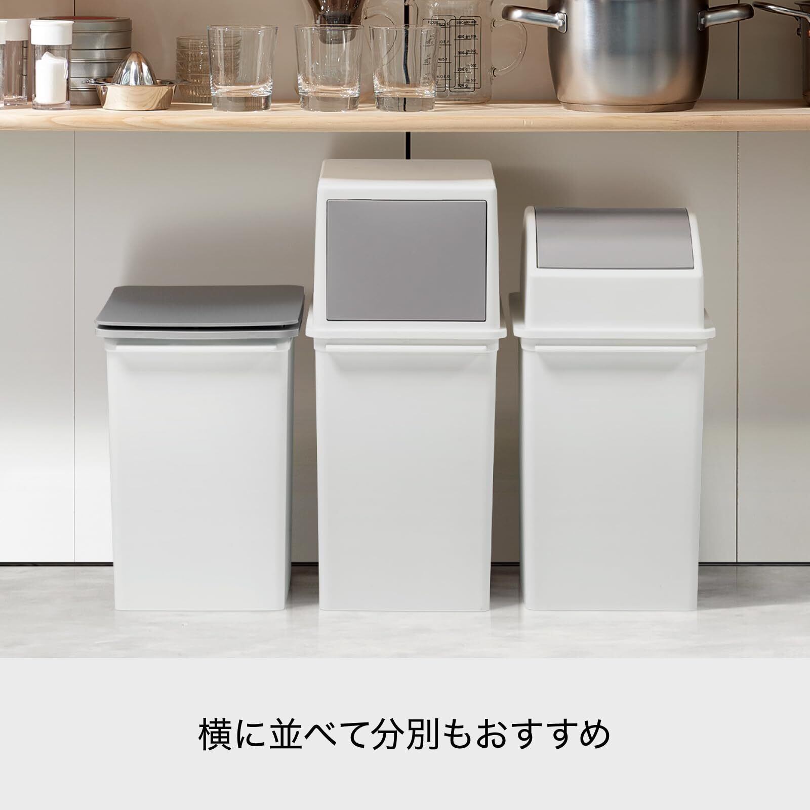タテに積み重ねられ、ヨコにも並べられる分別に便利なダストボックスです。フロントオープンタイプの為、片手で簡単にゴミを捨てられます。