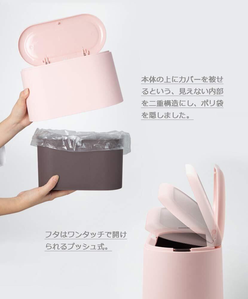 カバーを上から被せることで、ゴミ袋を外から見せずにインテリアをですっきり見せるシンプルな卓上ゴミ箱です。