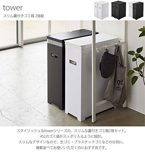 山崎実業(Yamazaki) スリム蓋付きゴミ箱 2個組 ブラック 約W19×D40×H54cm(1個あたり) タワー 折り畳んで運べる 5206