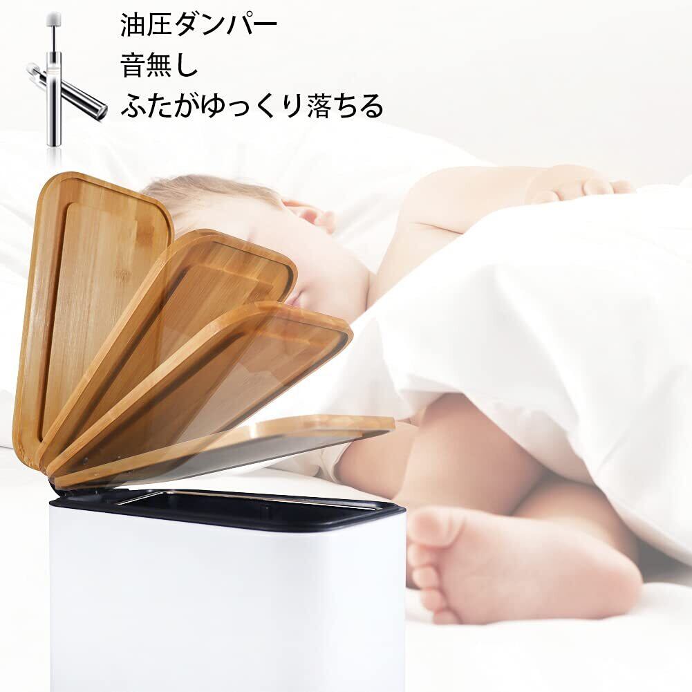 ゴミ箱 ふた付き 5L スリム ペダル式 ゴミ箱 角型 竹蓋 おしゃれ ごみ箱 消臭 密閉 音無し キッチン/リビングルーム/トイレ/バスルーム/オフィス/部屋用(白い)