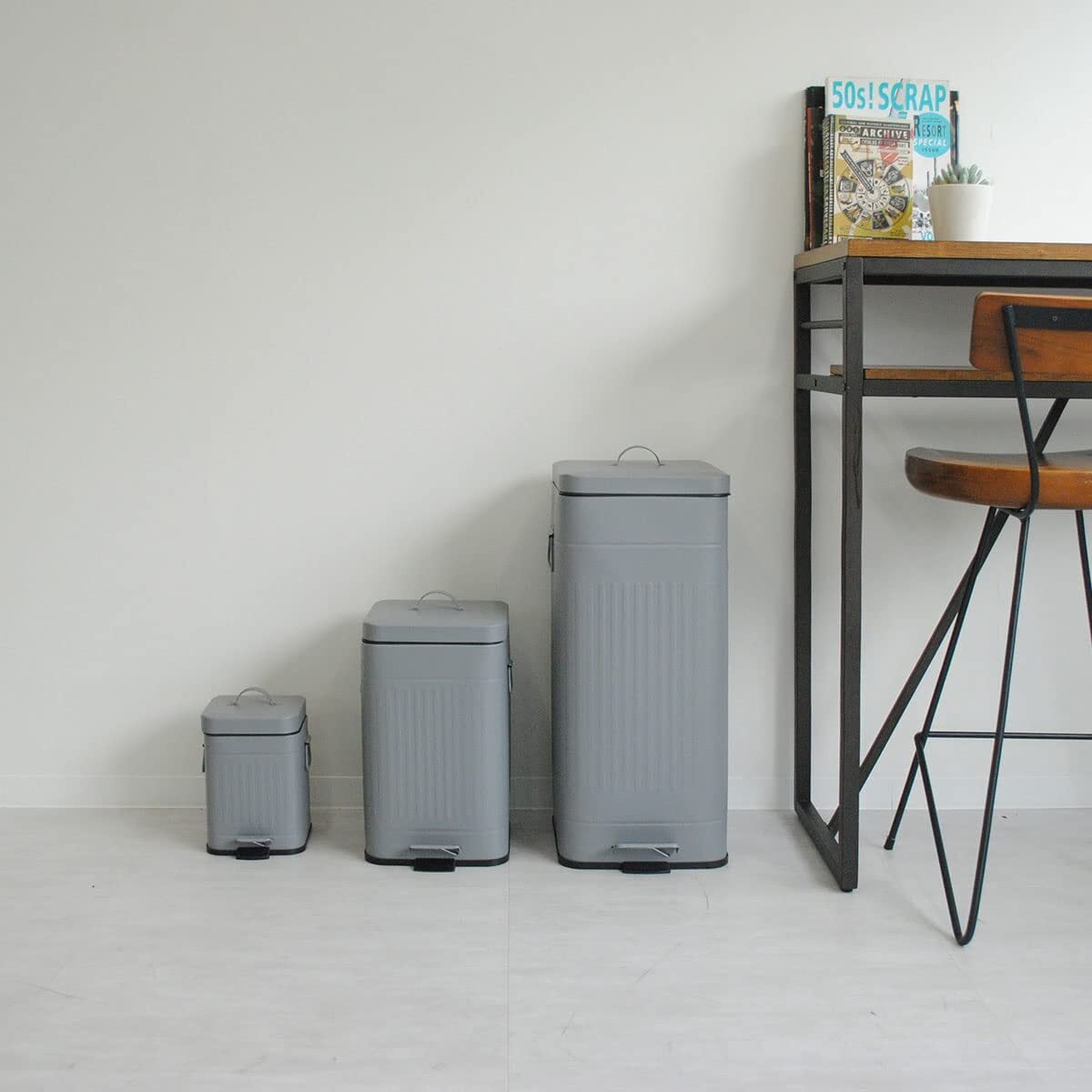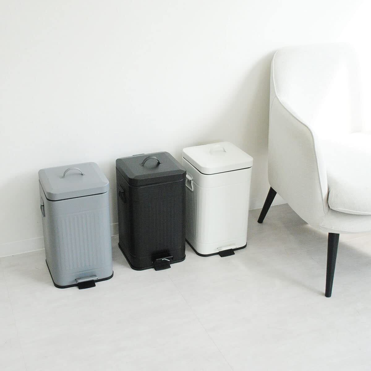 キッチン、リビングなど様々な場所で使えるシンプルなふた付きゴミ箱。