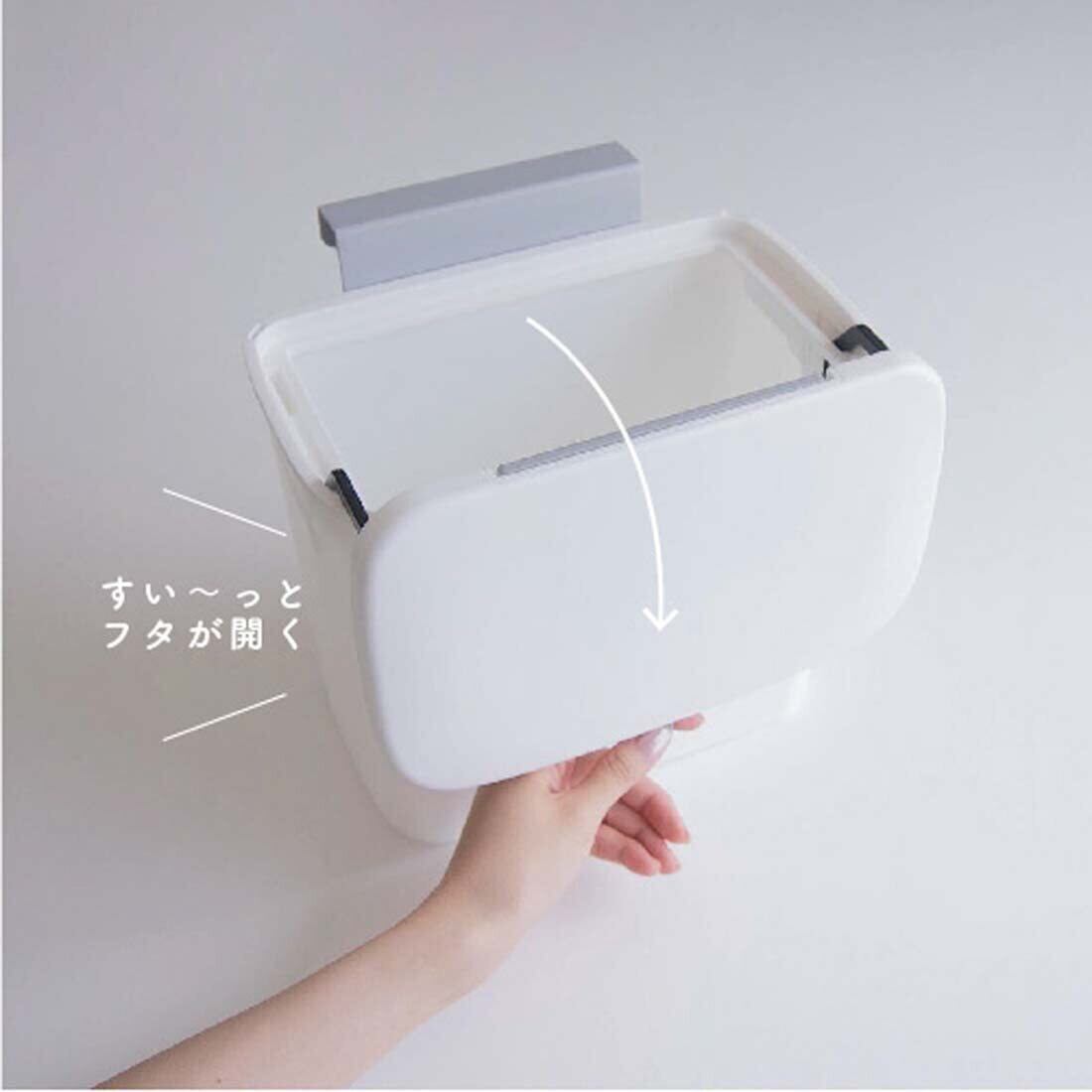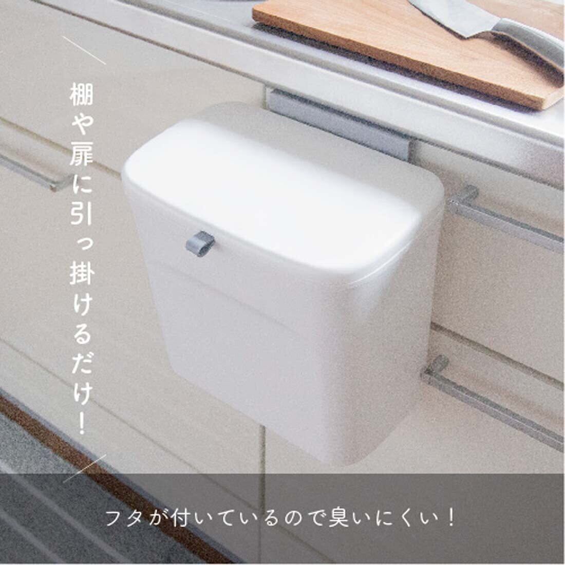 棚や扉に引っ掛けて取り付けでき、まな板からゴミをそのまま捨てられる便利なダストボックス