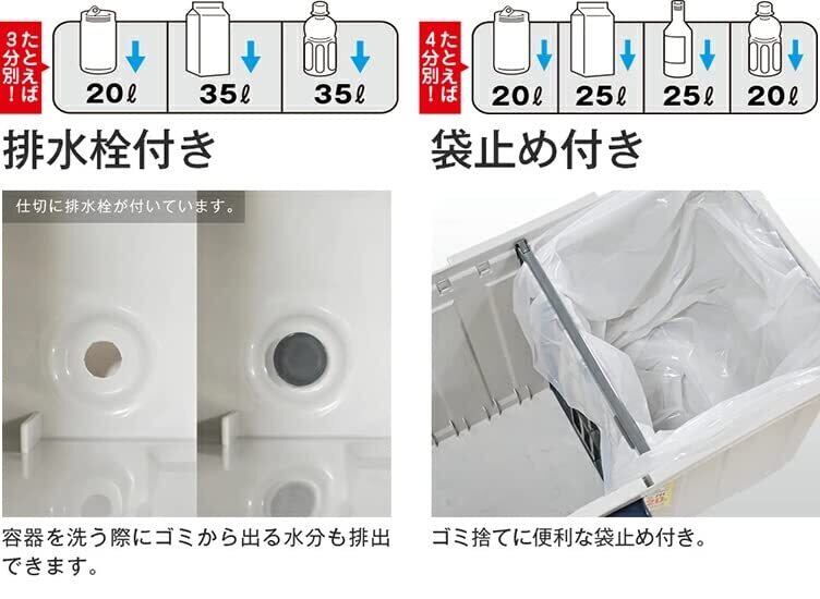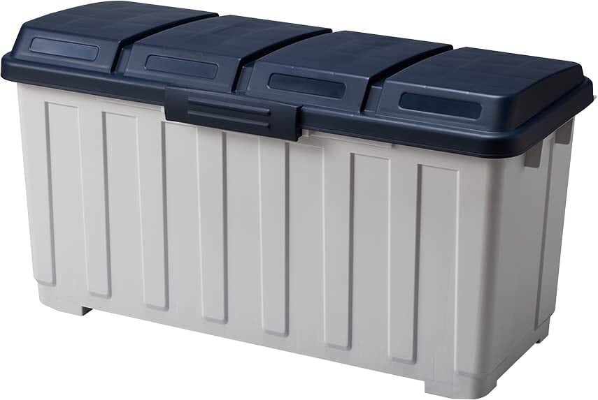 アスベル フタ付きゴミ箱 屋外 120L 4分別ダストボックス 分別用仕切付き 青 大容量 A6653