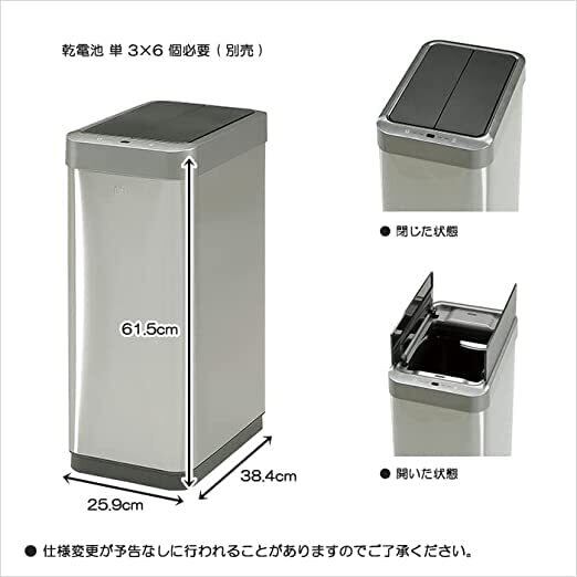 【仕様】 45リッター ふた付き オートセンサー ソフトオープン・クローズ インナーボックスなし 単3電池×6個が別途必要です 中国製 完成品
