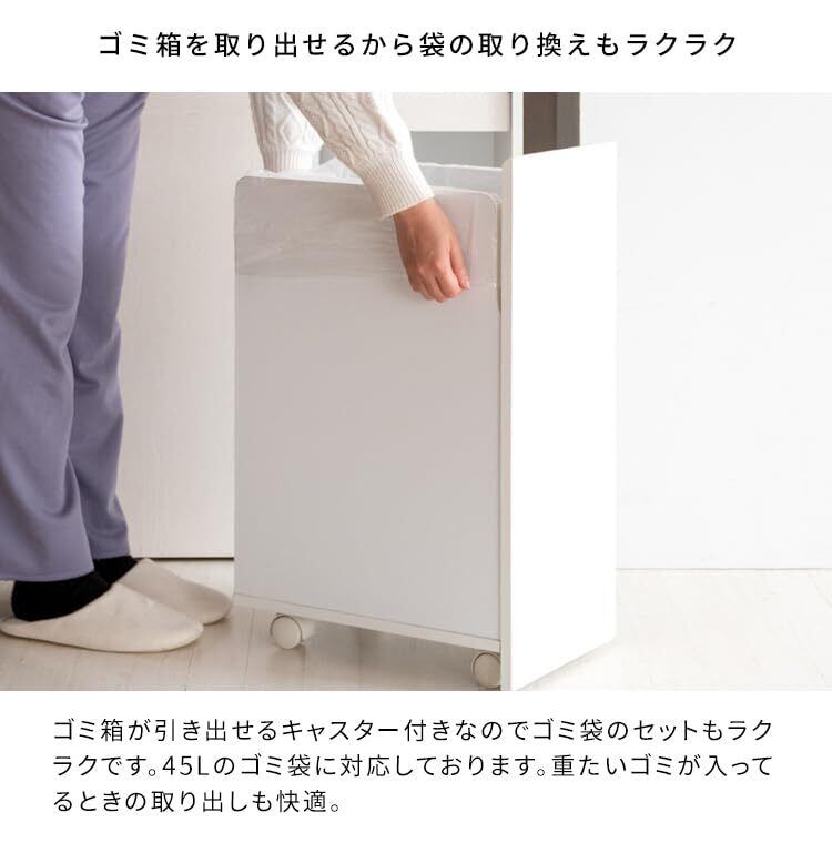 【材質】合成樹脂化粧繊維板、プリント紙化粧繊維板【備考】組立式(約60分)、対応ポリ袋:45L、天板耐荷重:5kg