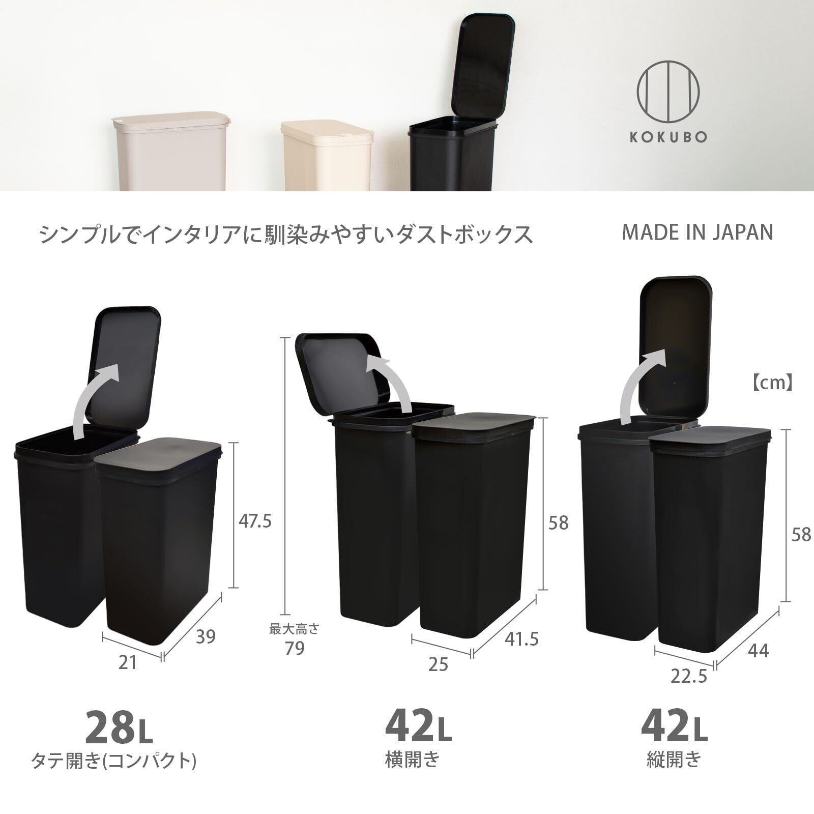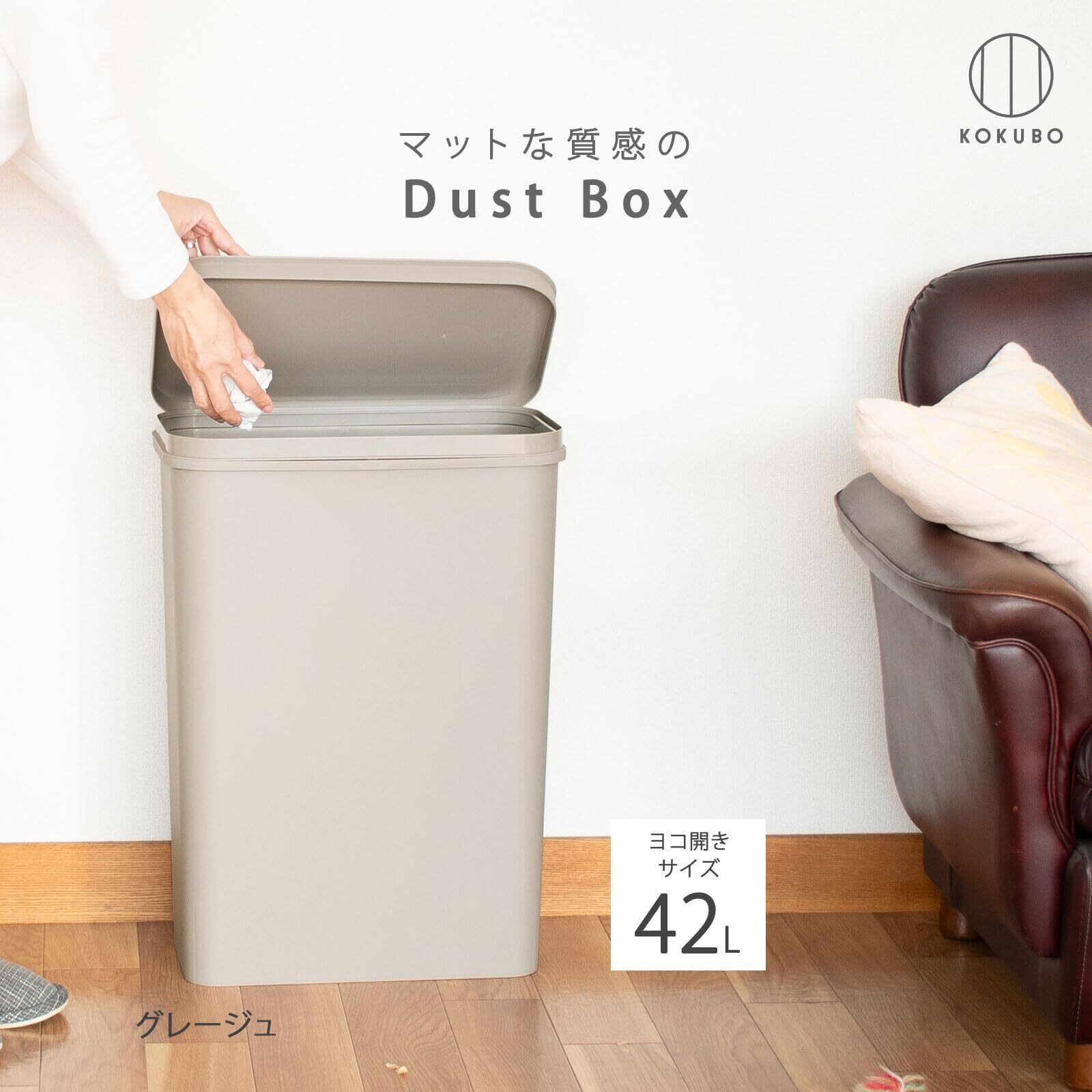 KOKUBO(コクボ) フタ付きゴミ箱 シンプルダストボックス グレージュ 42L日本製 横開き フレーム付き おしゃれ コンパクト ポリ袋 ツヤ消し マット KM-606