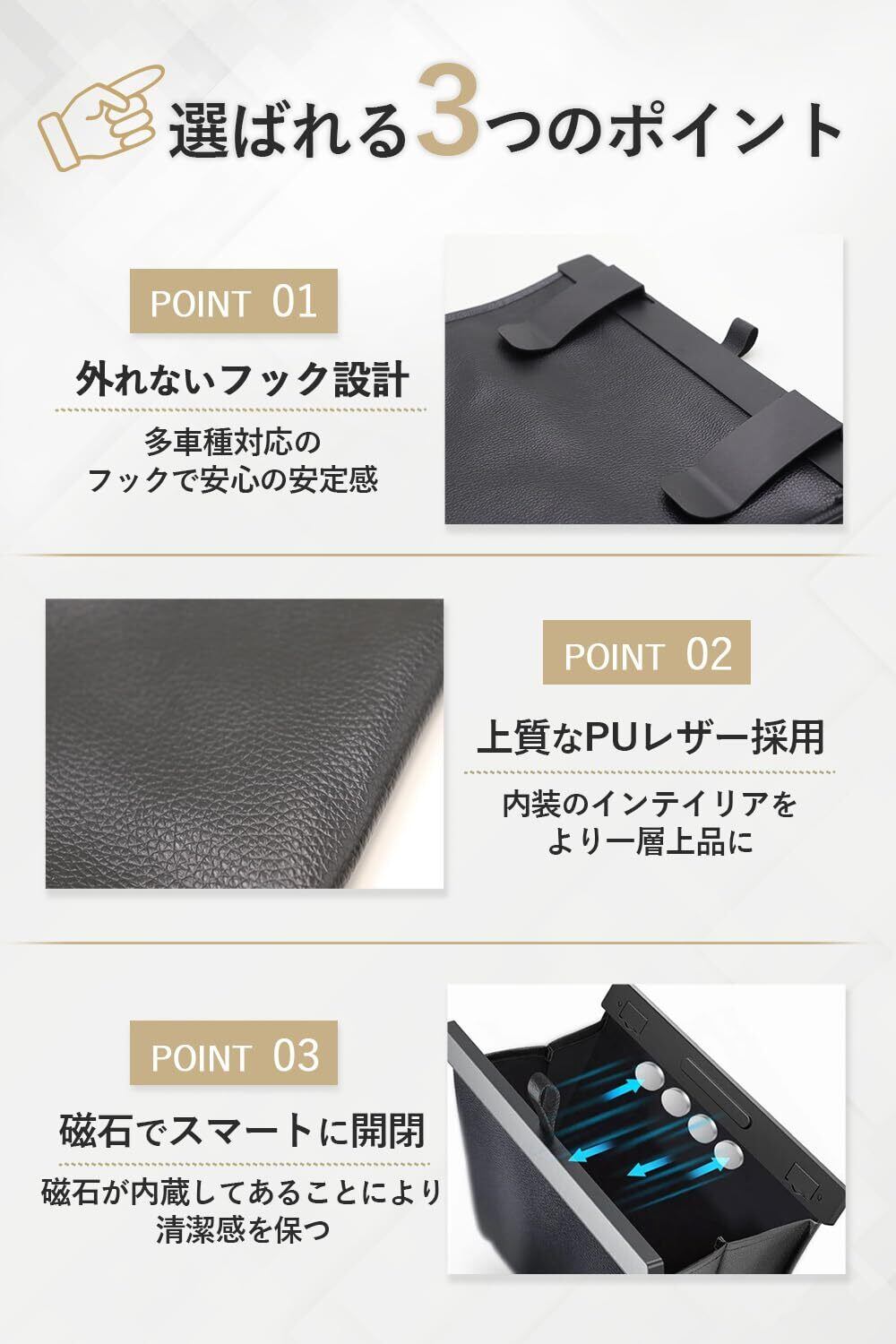 ※バックポケットがない車には装着できませんので、ご購入前にご確認ください。