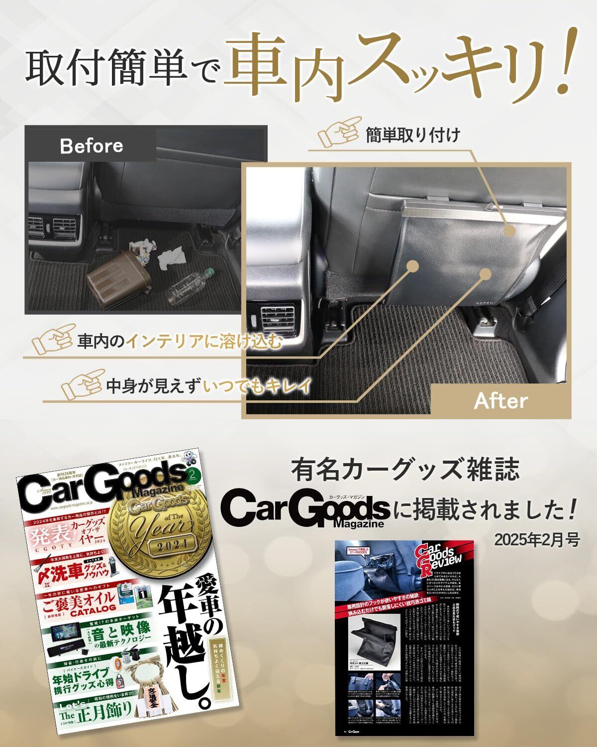 運転中に倒れない!置き場に困りがちな車のゴミ箱をスマートに設置可能!