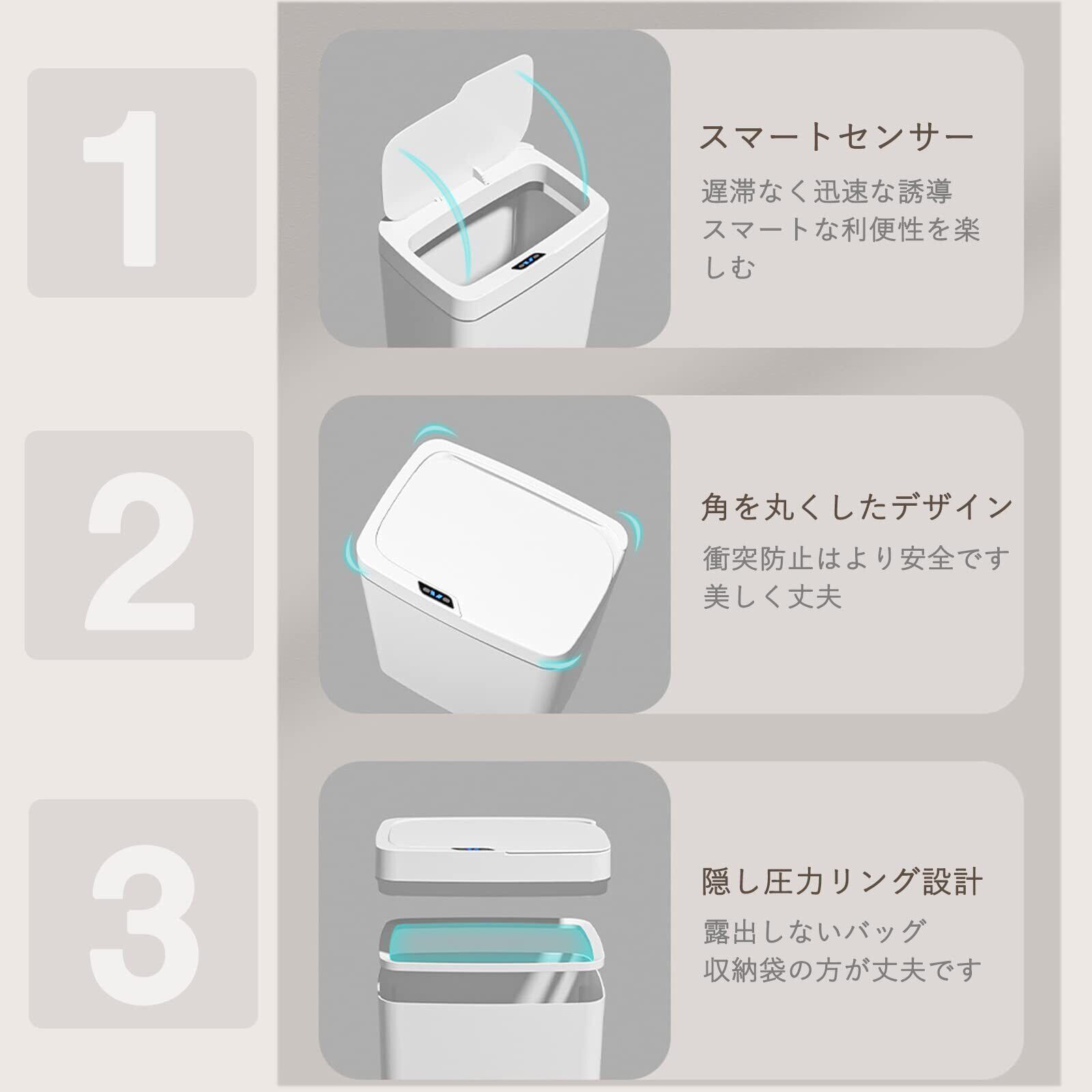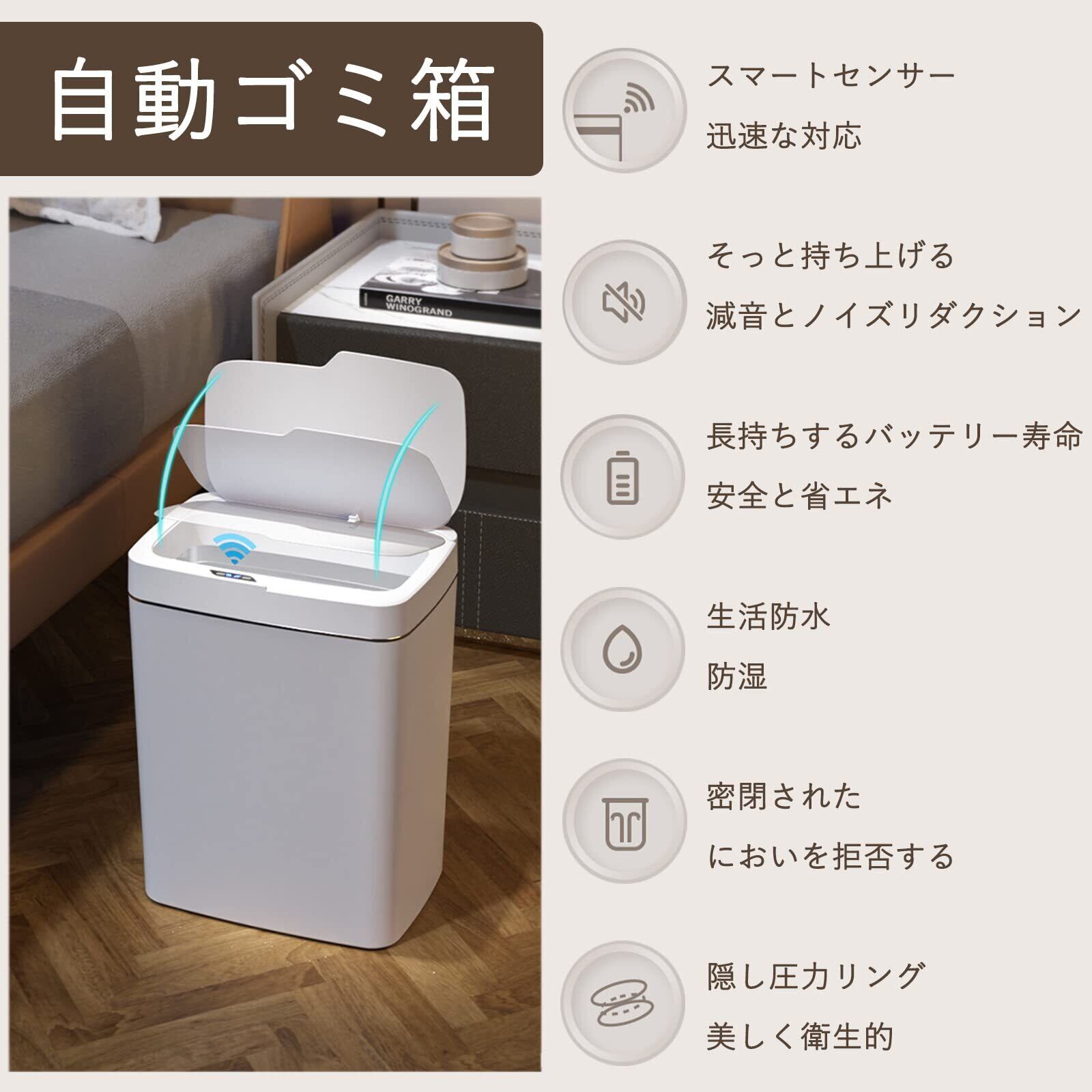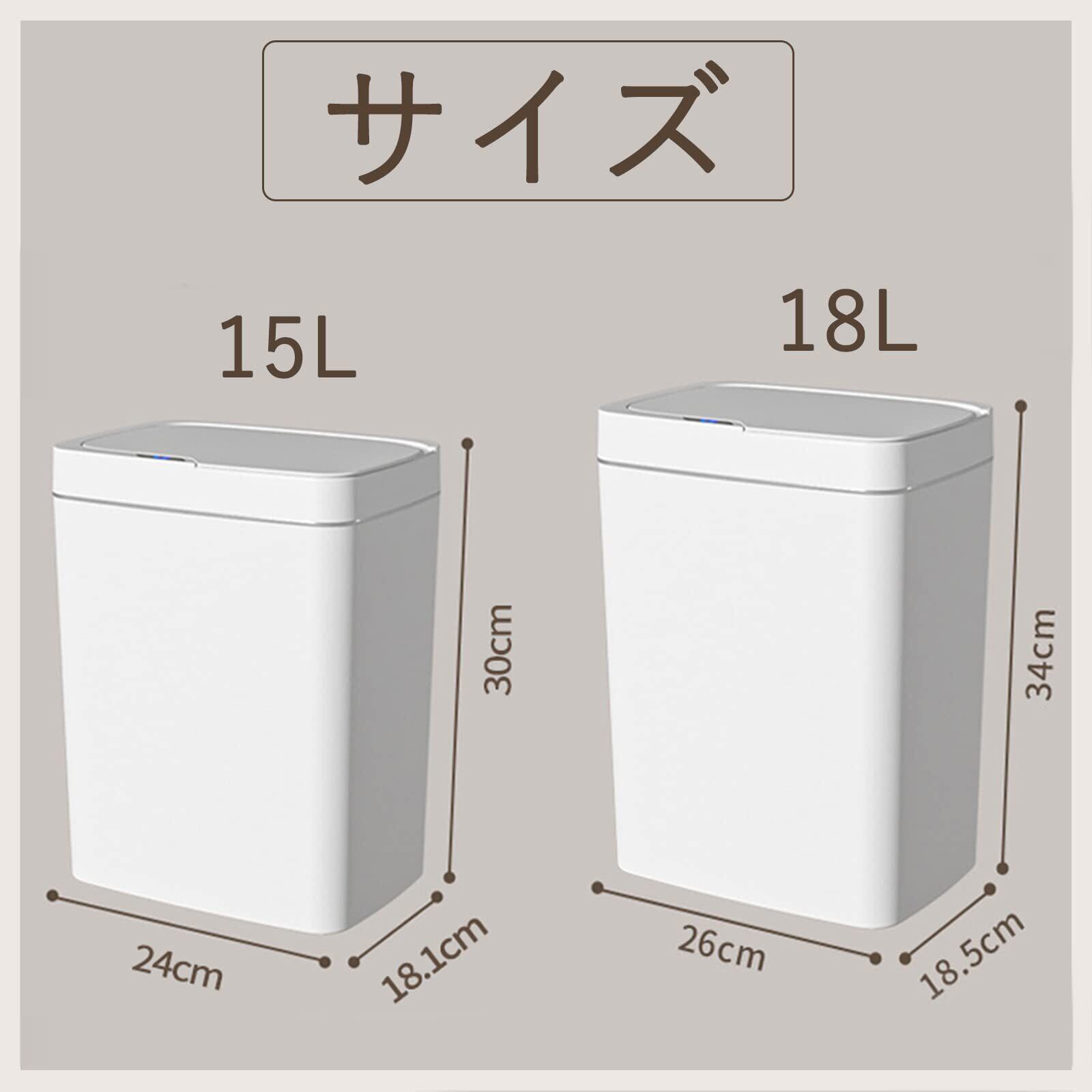ゴミ箱 自動開閉 スリム 自動ゴミ箱 ふた付き 15/18リットル 人感センサー ダストボックス おしゃれ 大容量 ごみ箱 密閉 防臭 自動開閉ダストボックス 化粧台 オフィス 車内 宿舎 部屋用 キッチン トイレ 家庭用 (ホワイト,18L)