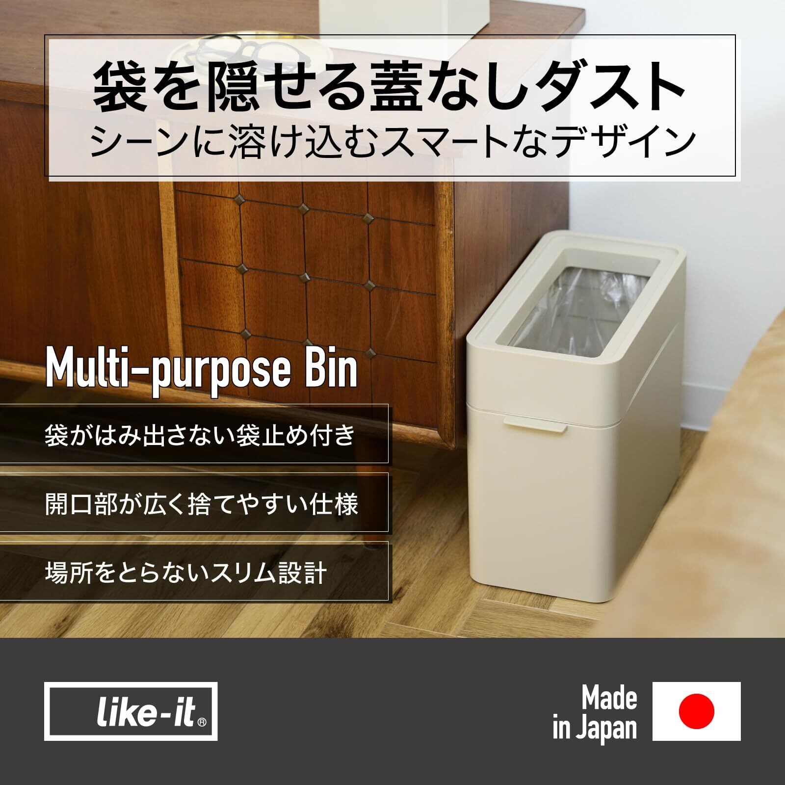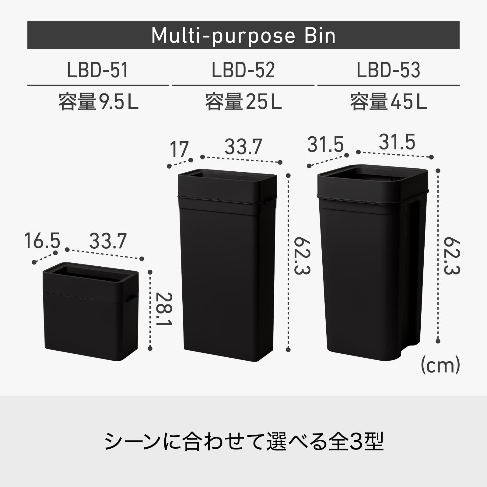 ライクイット (like-it) インテリアに馴染むおしゃれ角型ゴミ箱 フタなしゴミ箱 マルチパーパスビン 約9.5L ダストボックス ブラック 日本製 LBD-51 スリム コンパクト 省スペース 袋が見えない