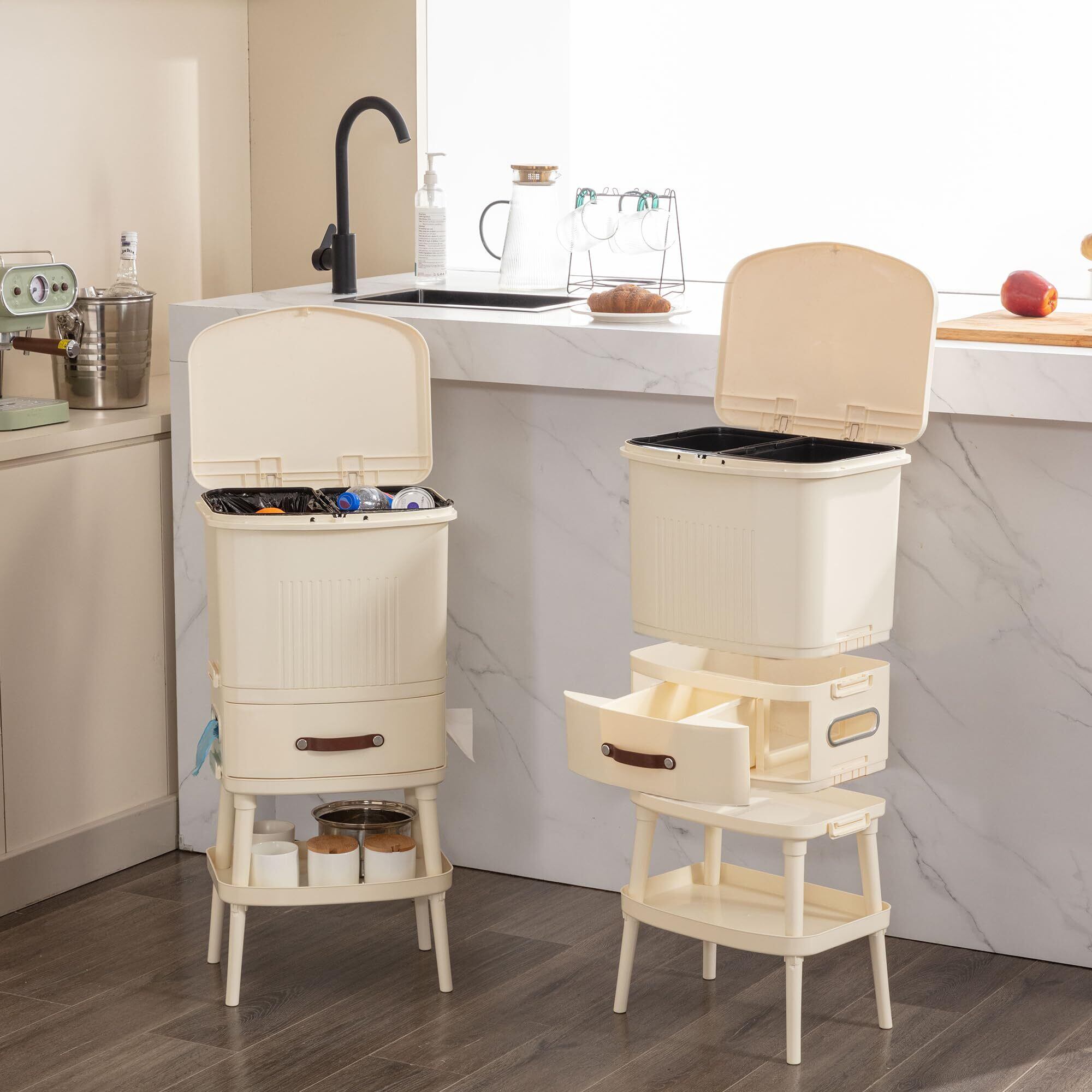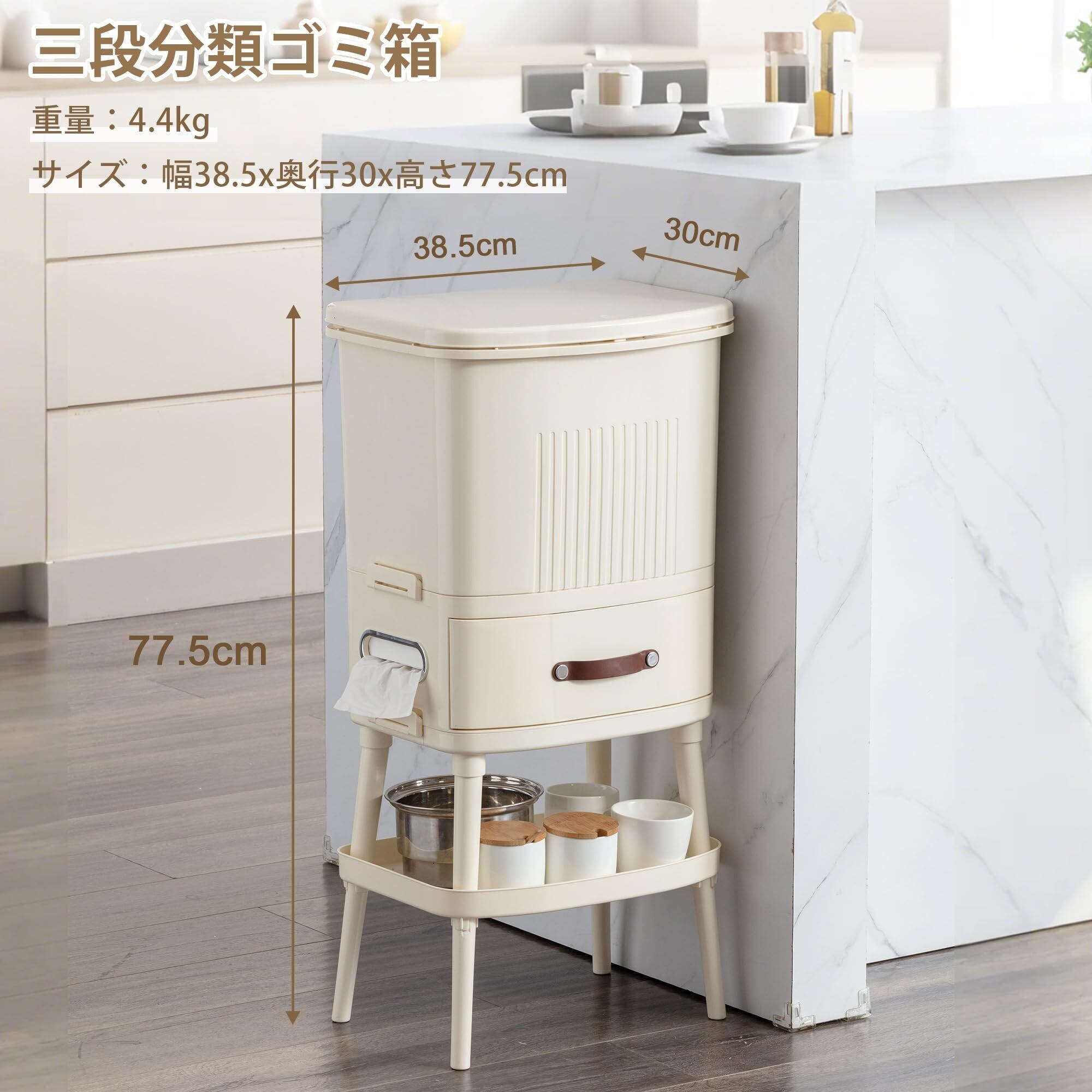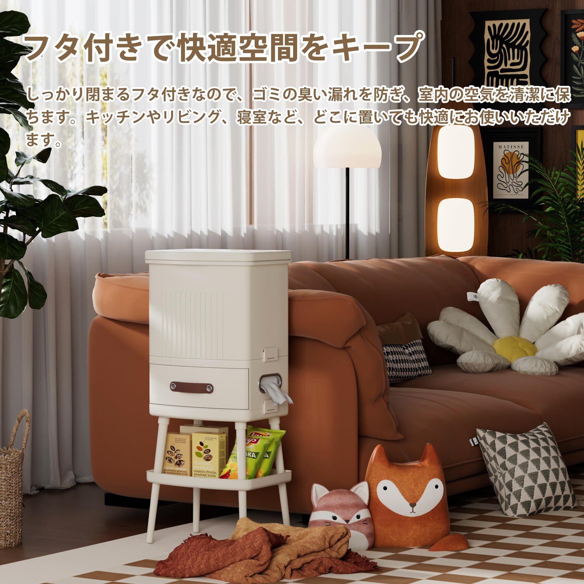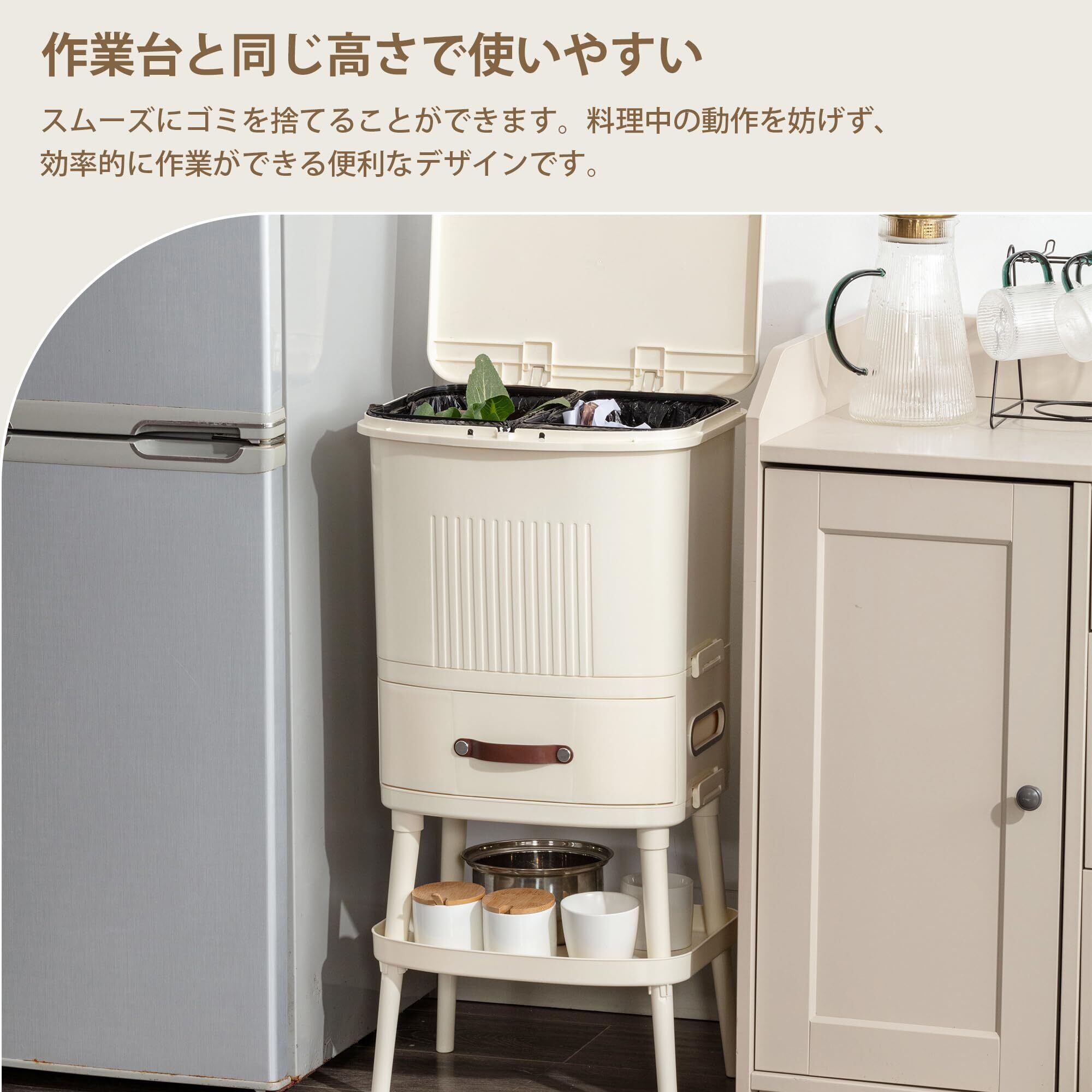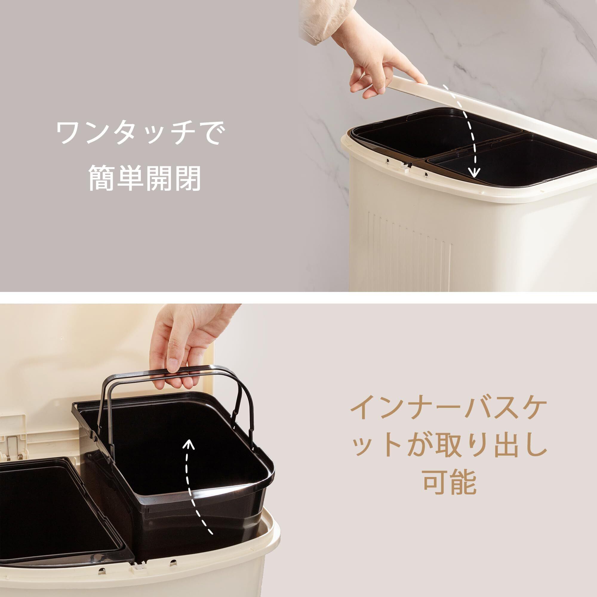 【おしゃれな見た目】この分別ごみ箱の色は可愛いクリームホワイトで、リビングや居間などの中で和やかな雰囲気を演出できます。室内のインテリアを重視する方におすすめです。