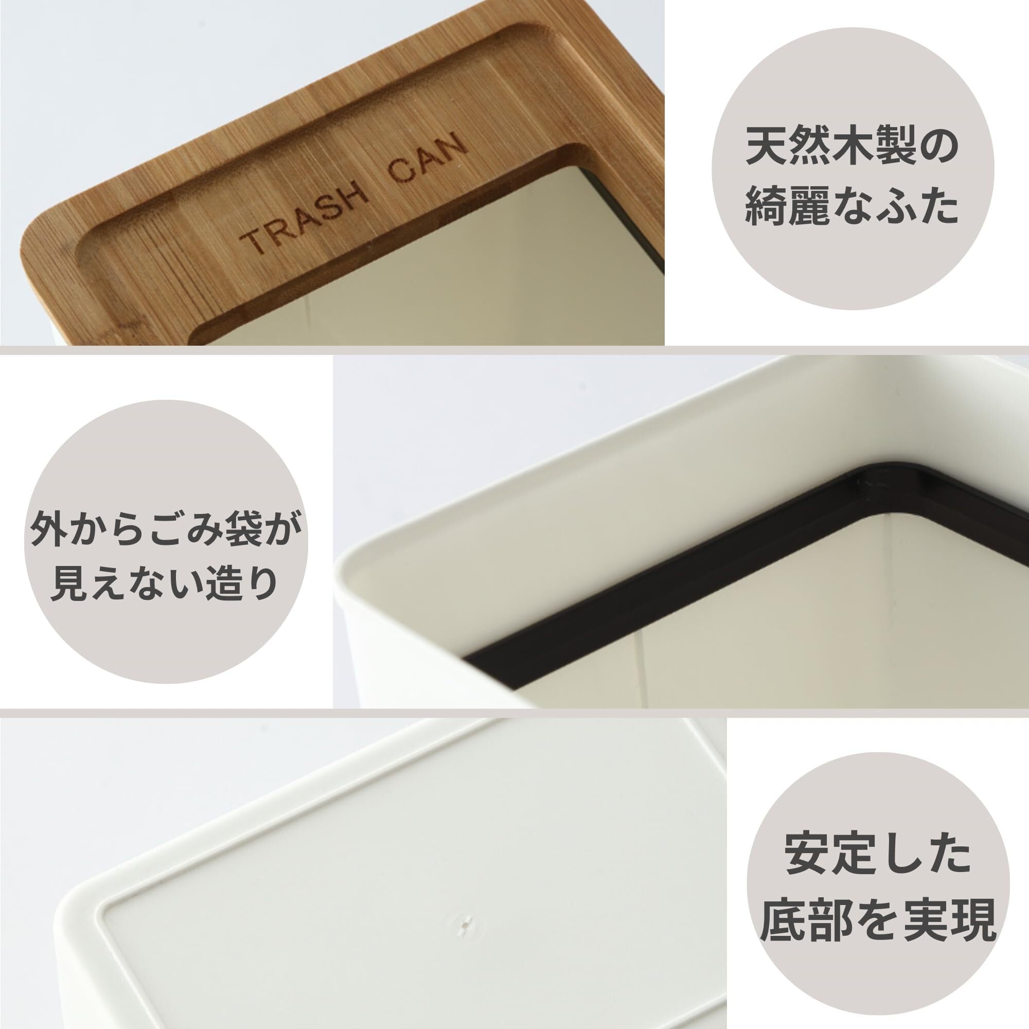 【竹製のフタ付き】竹製のきれいなフタがさりげないアクセントに、フタは載せるだけ。竹は抗菌性・防臭性に優れて、臭いや菌の繁殖を抑えて衛生的に使えます