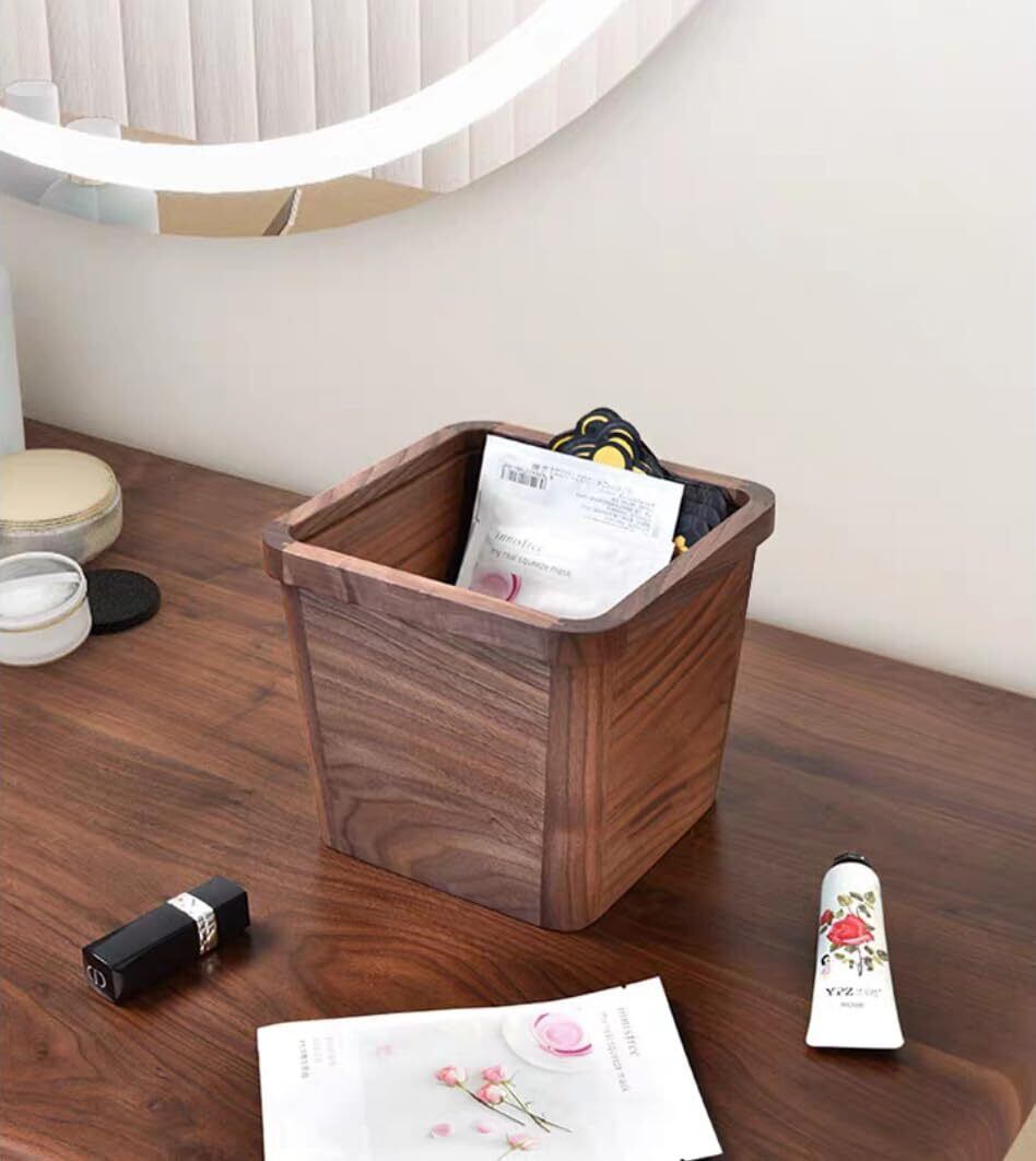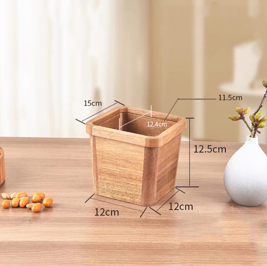 蓋なしデザイン、簡単にゴミを捨てられる 蓋がないオープントップデザインで、ゴミをスムーズに捨てることができ、使いやすさを追求しています。 押さえリング設計、ゴミ袋のズレ防止 ゴミ袋をしっかりと固定できる押さえリング付きで、ゴミ袋がずれたり落ちたりするのを防ぎます。 天然木材使用、環境に優しく健康的 厳選された天然アカシア材を使用し、環境に優しく健康的で、耐久性も抜群です。 小物収納としても便利 ゴミ箱としてだけでなく、デスク上の小物や雑貨の収納にも最適です。 伝統的な榫卯工法、堅牢で長持ち 伝統的な榫卯工法で作られており、しっかりとした作りで、割れにくく長持ちします。 丸みのあるエッジ、滑らかな手触り 手作業で丁寧に磨かれた丸みのあるエッジで、手に優しく、毛羽立ちがなく滑らかな触感を提供します。