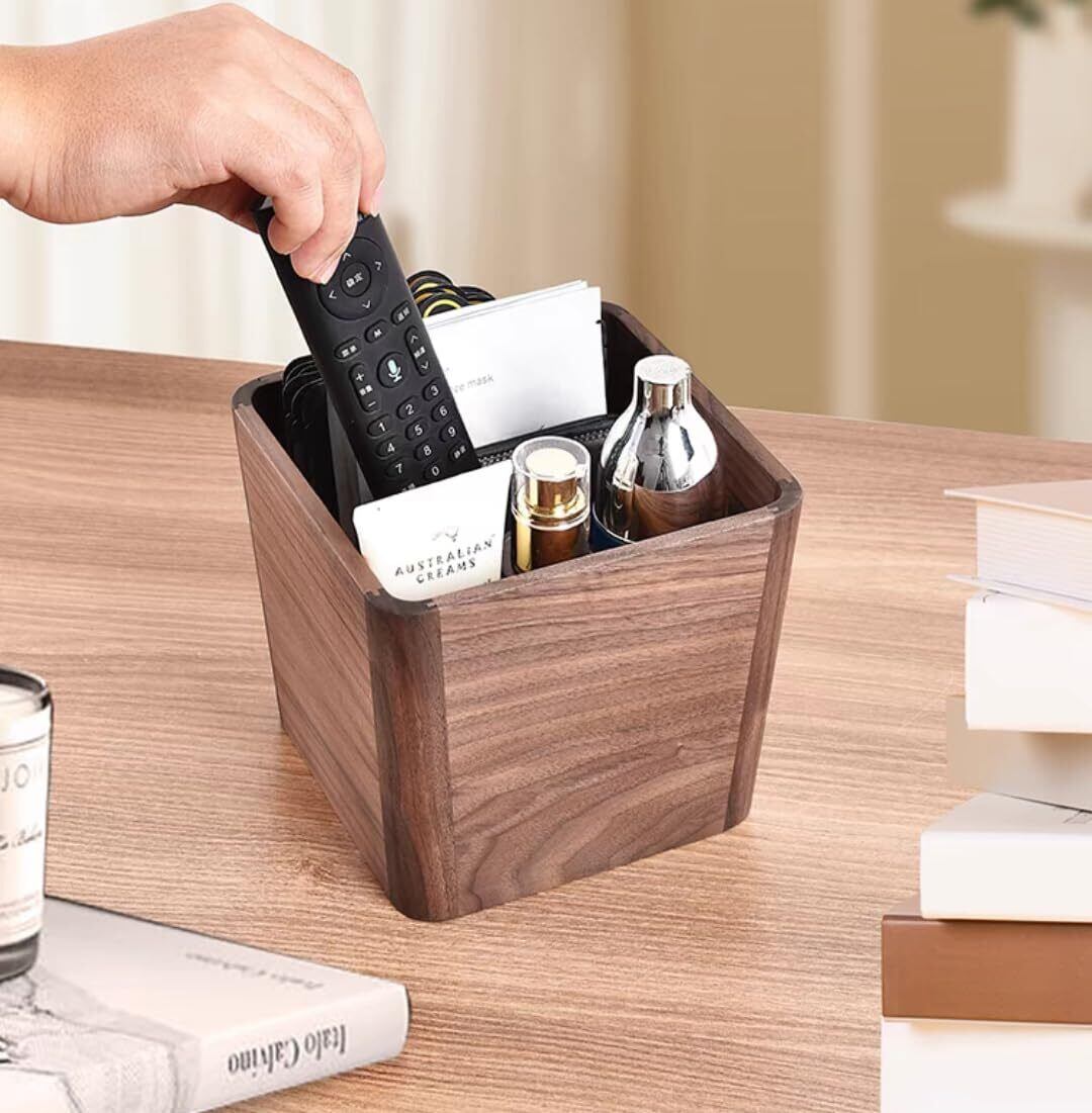 【小物収納】散らかりがちな小物の収納に、リビングやデスクの小物類の収納に適する木製ボックスです。使いたいときにすぐに手にとることができる。