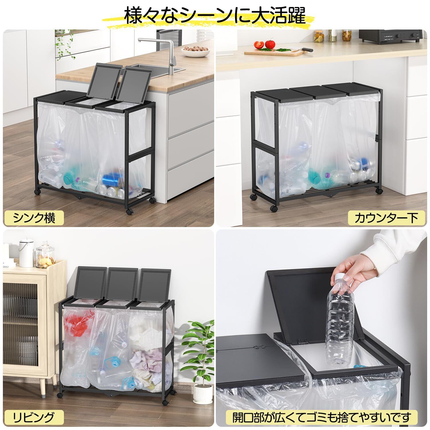 【人気商品】PRTONE ゴミ箱 分別 ゴミ袋ホルダー 3分別*45L ダストボックス キャスター付き 分別ゴミ箱 ふた付き おしゃれ スリム 3連 大容量 10L~55L袋対応 ゴミ袋 スタンド 縦開き キッチン 台所 リビング オフィス ゴミ箱ホルダー ダストワゴン ブラック | paghag