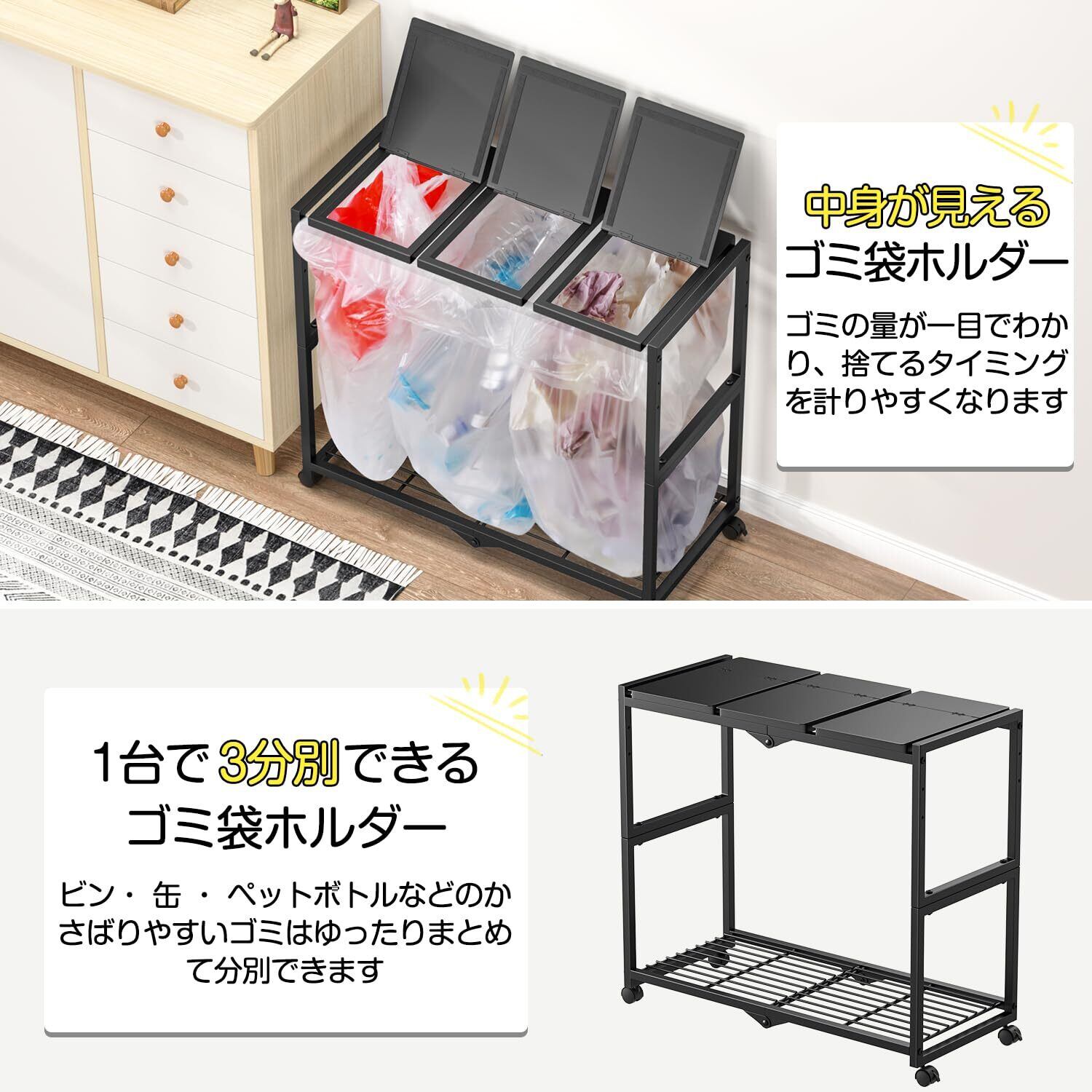 【1台で3分別できるゴミ箱】中身が見える3分別ゴミ袋ホルダーですので、瓶・缶・ペットボトル・プラスチックなどの資源ごみを分別することにぴったりする上、ゴミの量が一目でわかり、捨てるタイミングも計りやすくなります。何個のゴミ箱を置く必要がなく、1台でゴミを簡単に分別しながら捨てることかできます。商品仕様:キャスタータイプ組立後サイズ:約70*32.5*65cm アジャスタータイプ組立後サイズ:約70*32.5*61.5cm