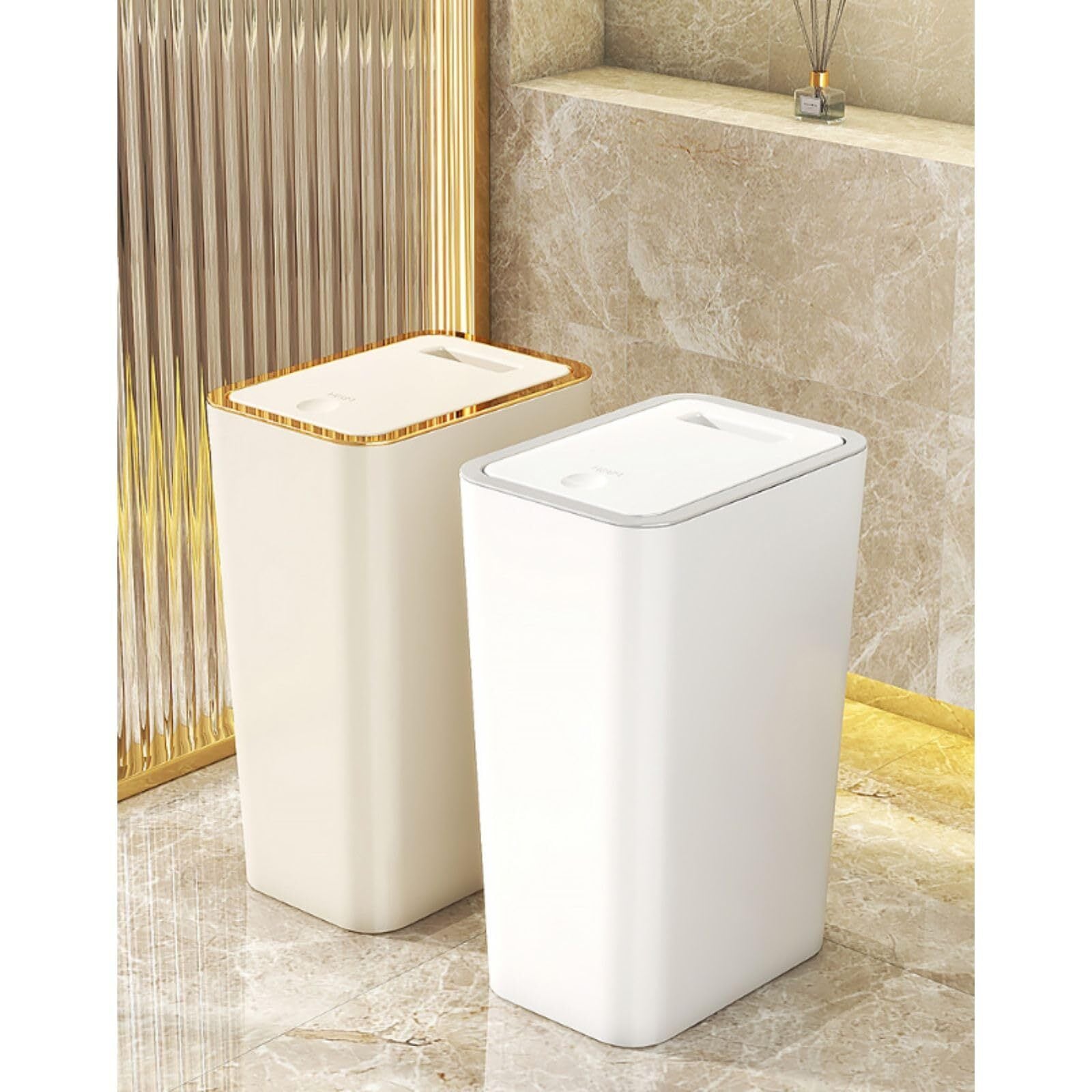Modest Joy ゴミ箱 ふた付き シンプル おしゃれ かわいい ダストボックス サニタリーボックス スリム プッシュ式 10L 新登場 (ホワイト+グレー)